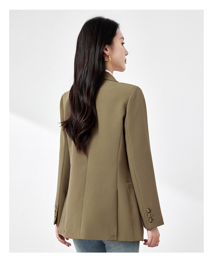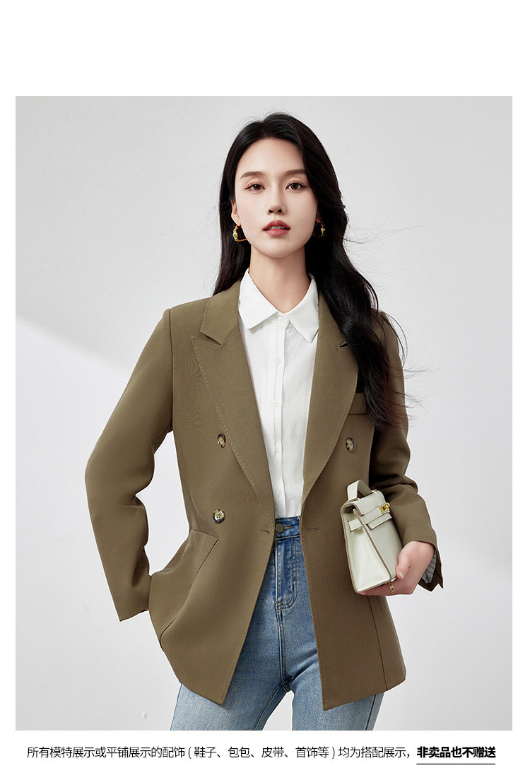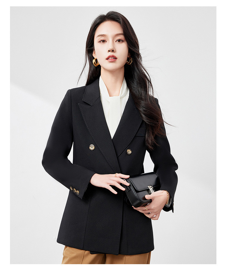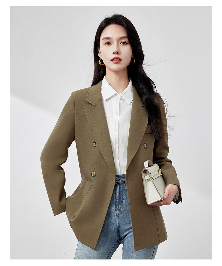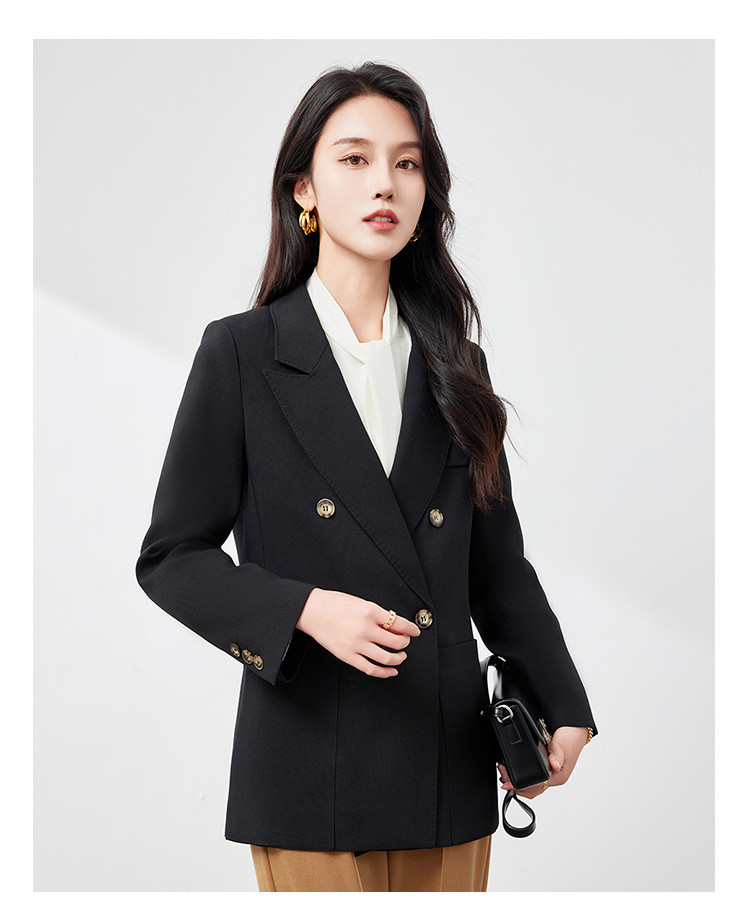 春秋日常通勤休闲百搭西装女职业知性时尚双排扣西服外套 059295
