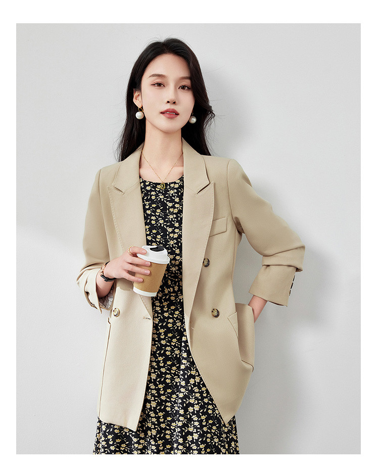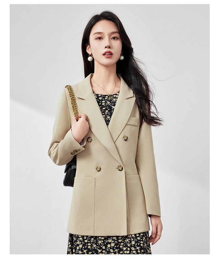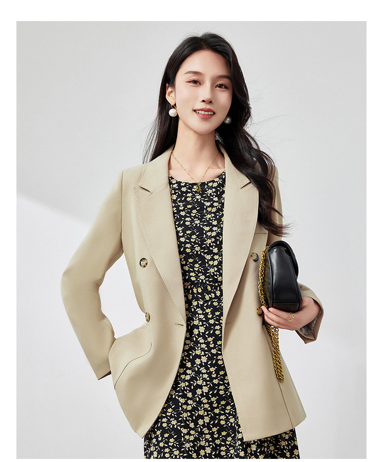 商品名称:春秋日常通勤休闲百搭西装女职业知性时尚双排扣西服外套 059295