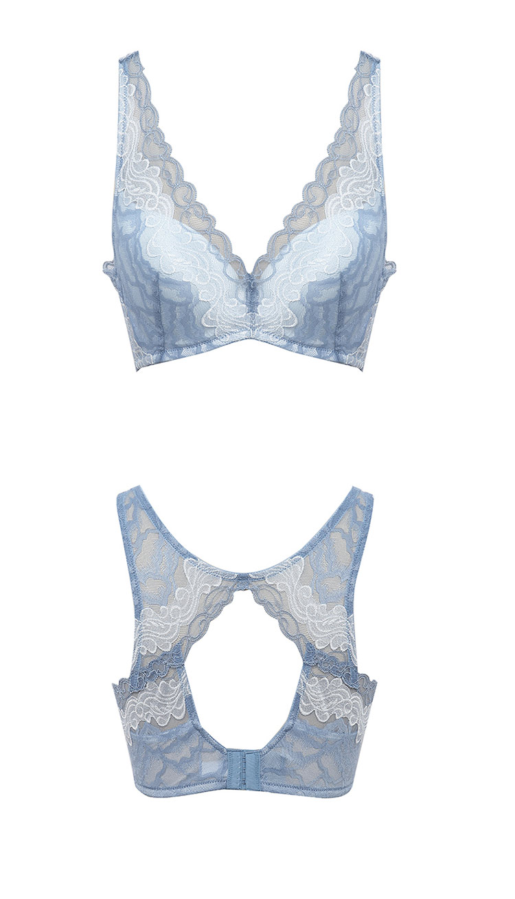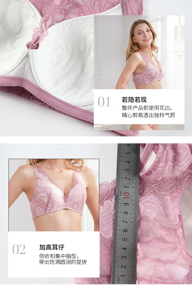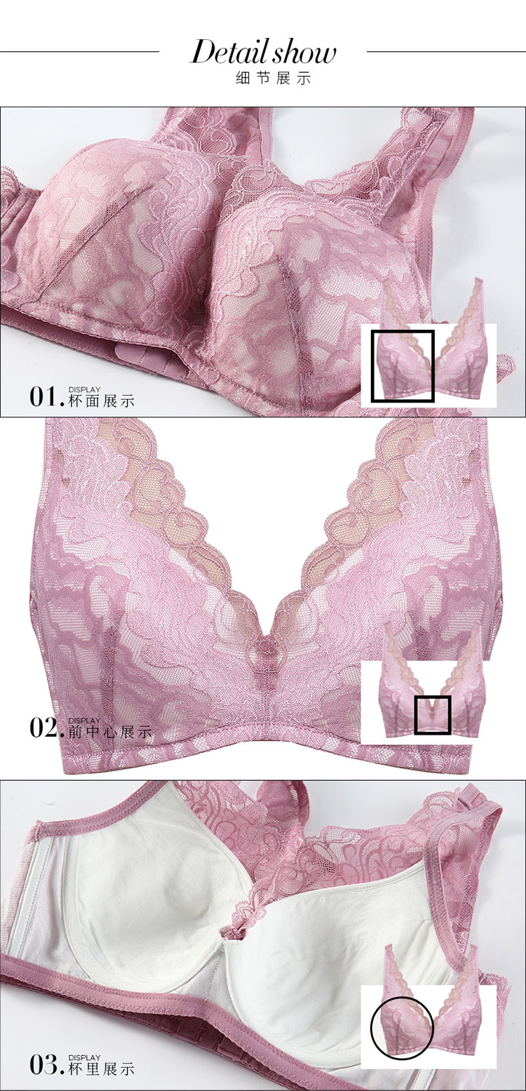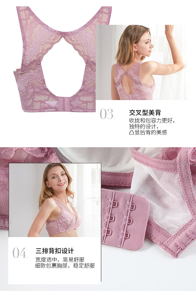 商品名称:【聚拢薄杯】蕾丝聚拢罩杯交叉美背V型侧收上托内衣文胸夏季薄款 787659