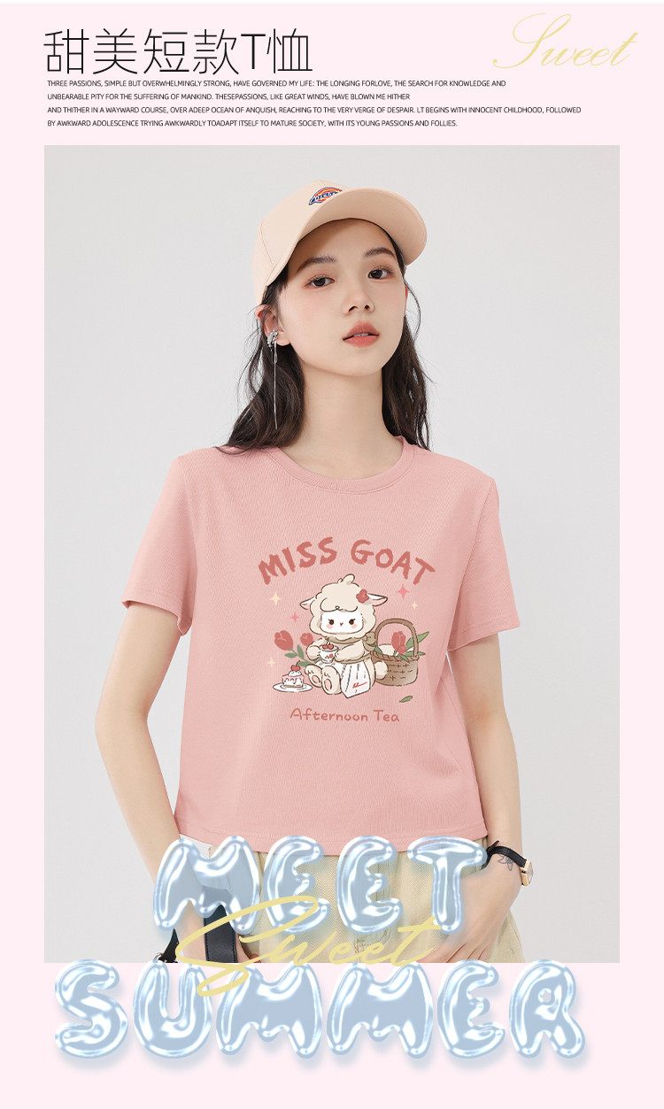 商品名称:【女装100%棉】夏季女式短袖T短款显瘦设计感甜辣风上衣 329363