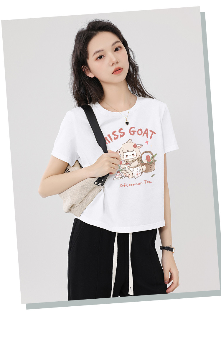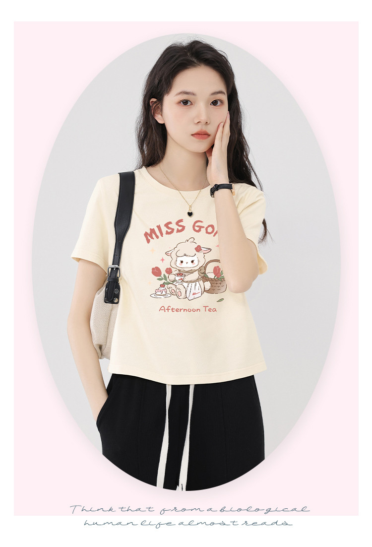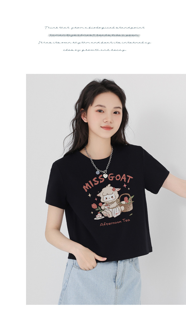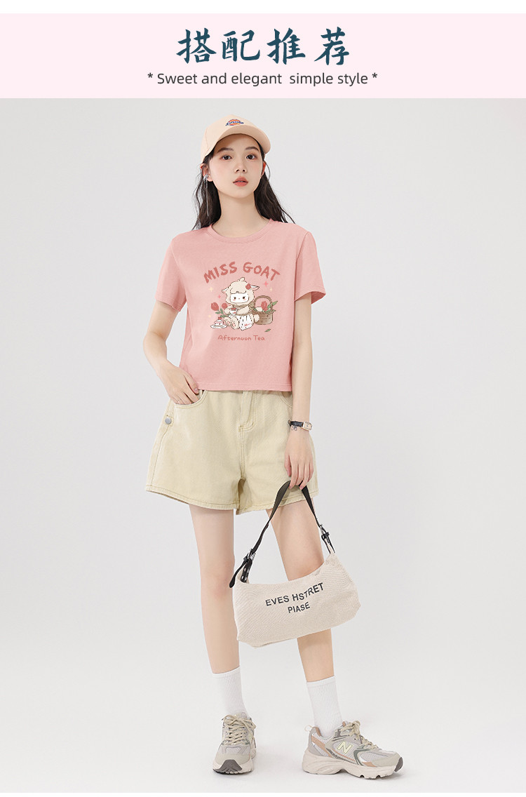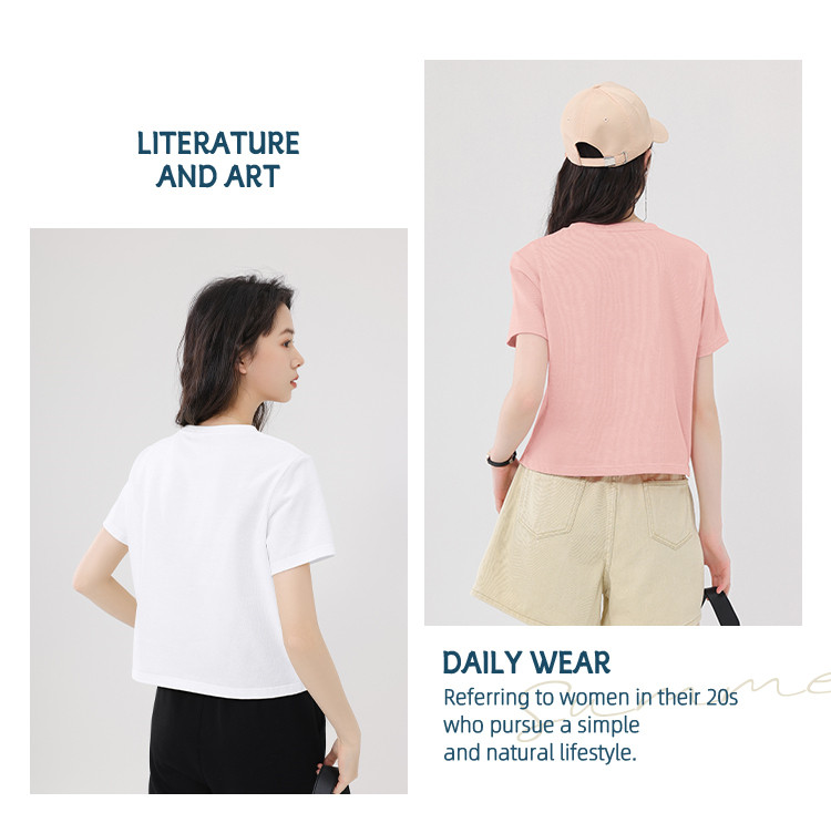 【女装100%棉】夏季女式短袖T短款显瘦设计感甜辣风上衣 329363