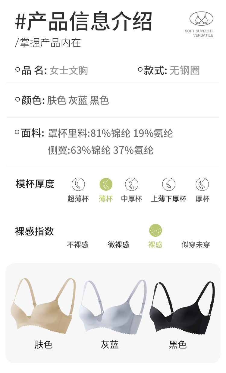 商品名称:【小胸专属】光面无痕减压内衣聚拢不空侧收文胸罩内衣女夏季薄款 555915