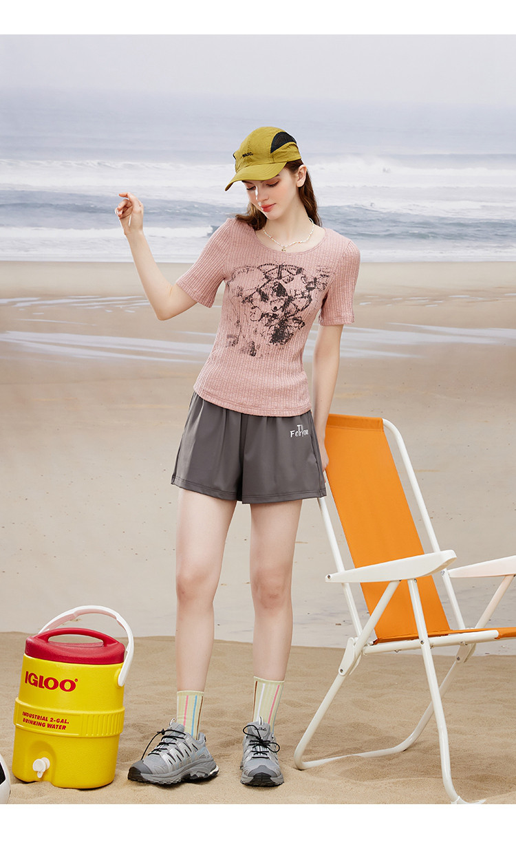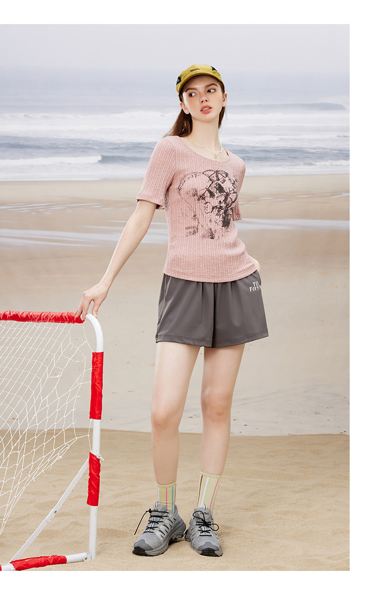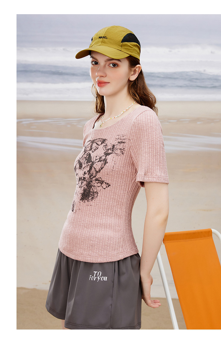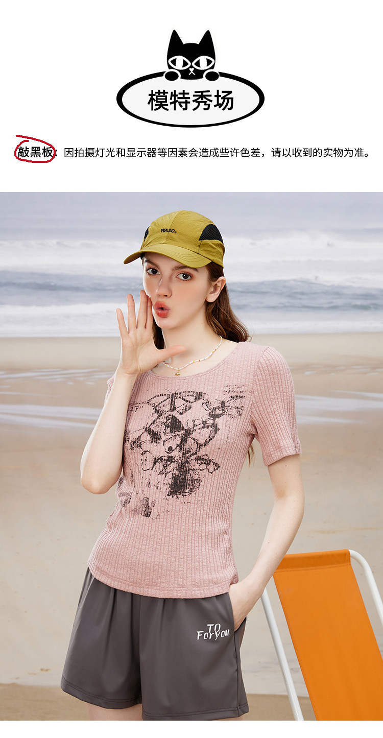 商品名称:美式复古蝴蝶图案印花短袖上衣夏季修身小清新女式针织衫 356381