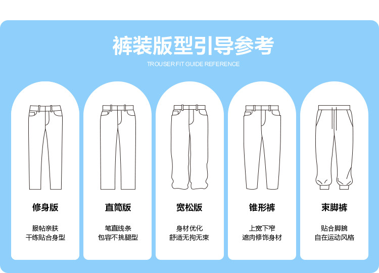 | 尺码 | 腰围(cm) | 裤长(cm) | 前浪(cm) | 臀围(cm) | 号型 |