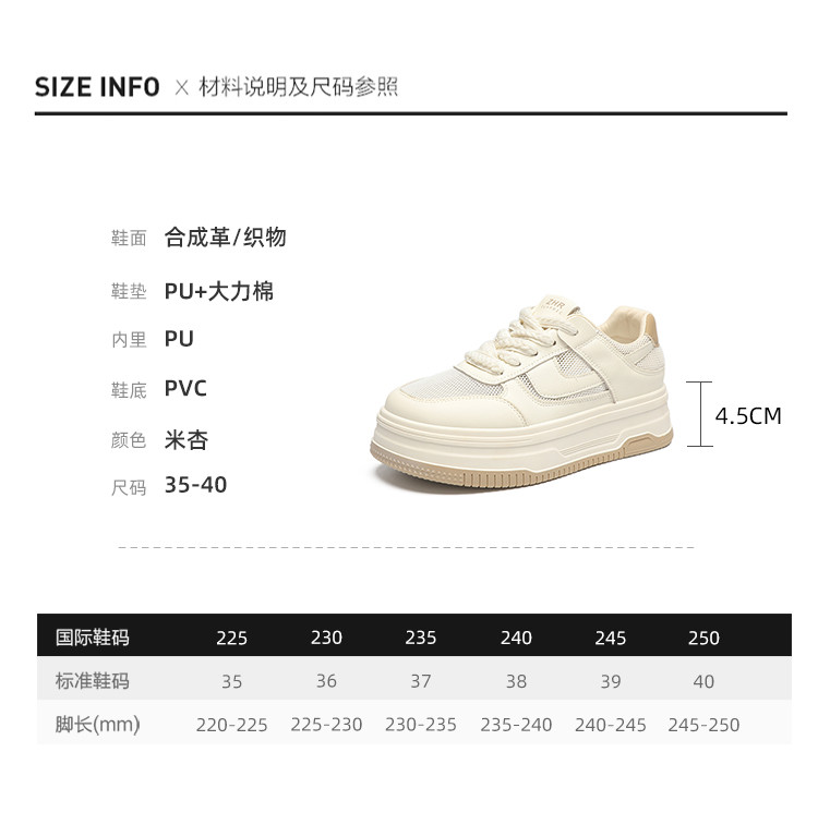 商品名称:【透气网面】时尚休闲鞋女板鞋女士厚底小白鞋女鞋百搭夏季款鞋子 608640