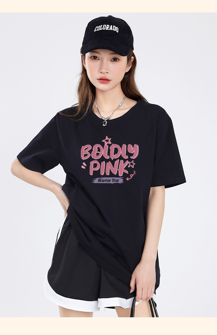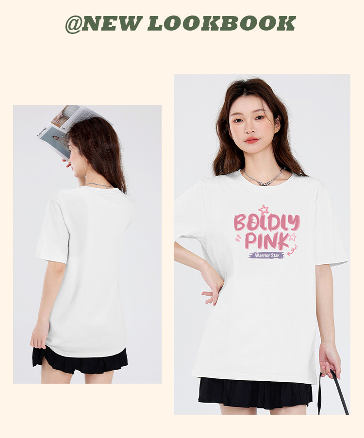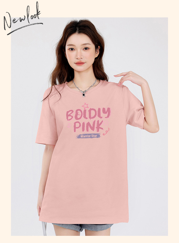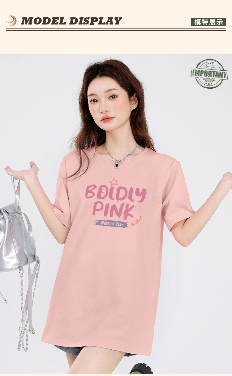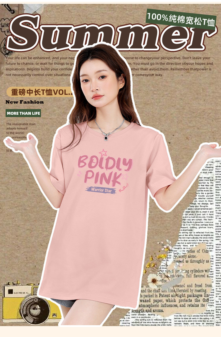 商品名称:【女装重磅棉】夏季纯棉圆领T恤女运动休闲宽松中长款短袖上衣 803219