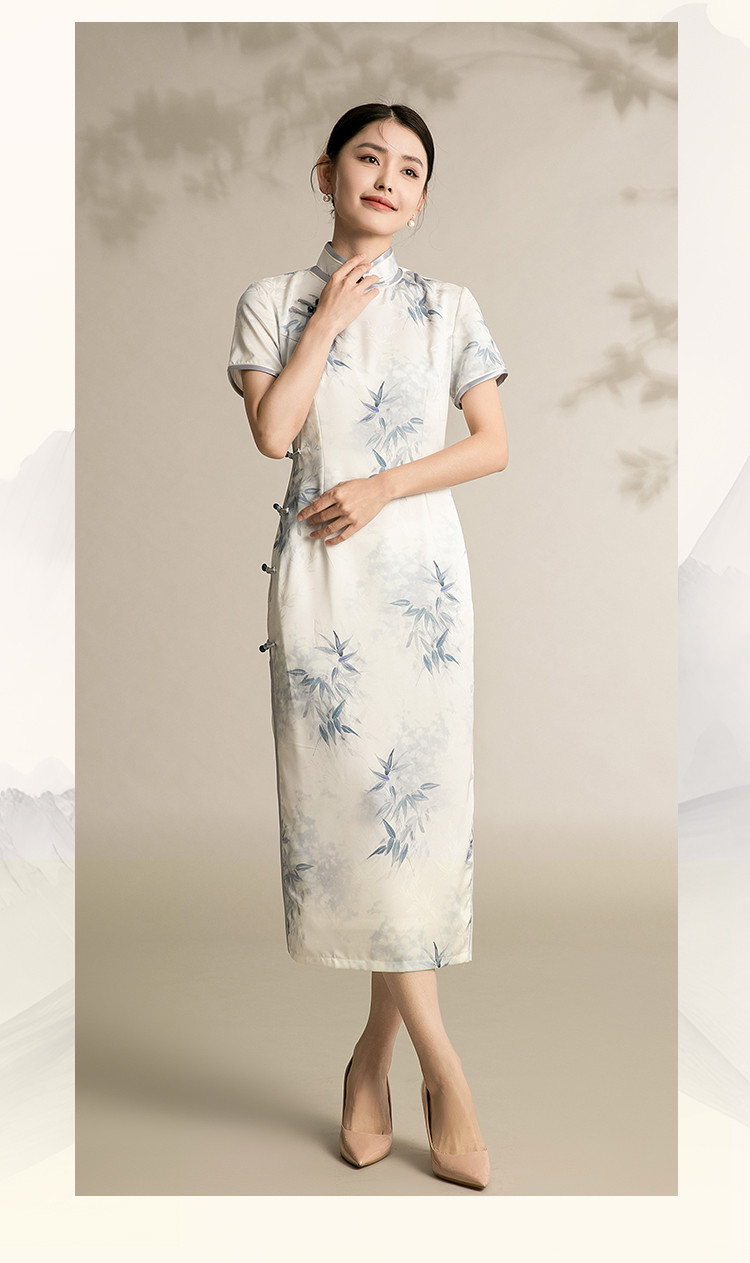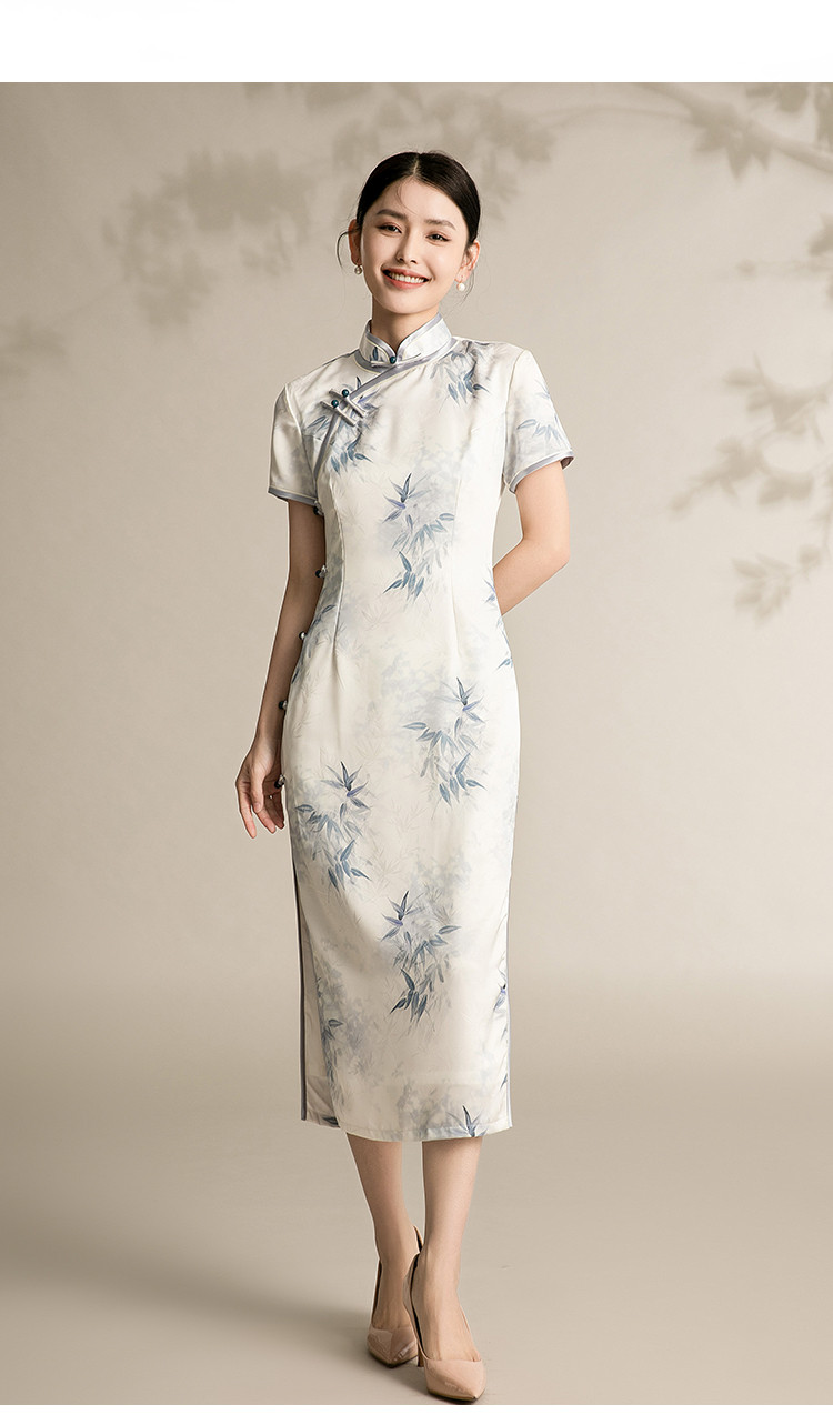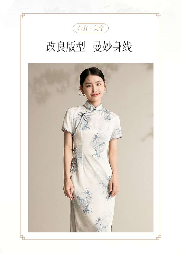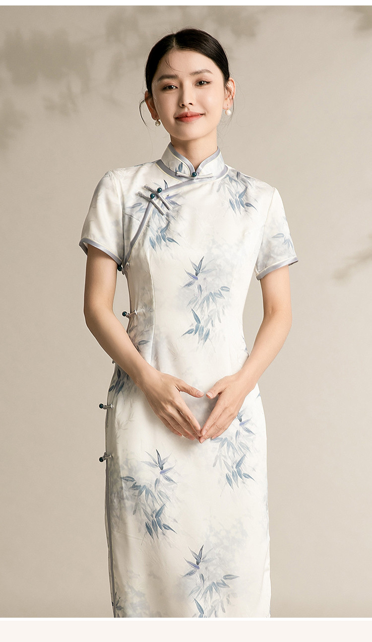 改良版国风中式旗袍浅色系温柔典雅连衣裙复古修身旗袍 315871