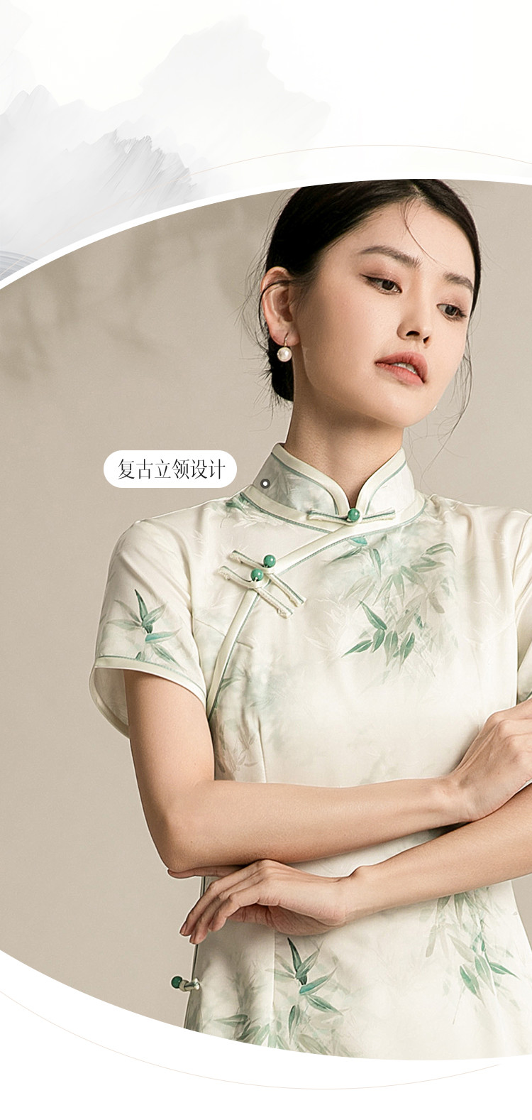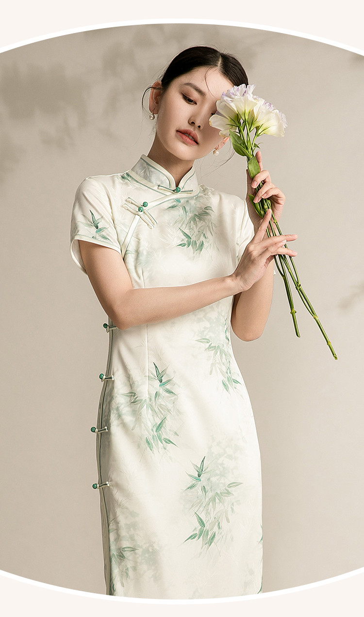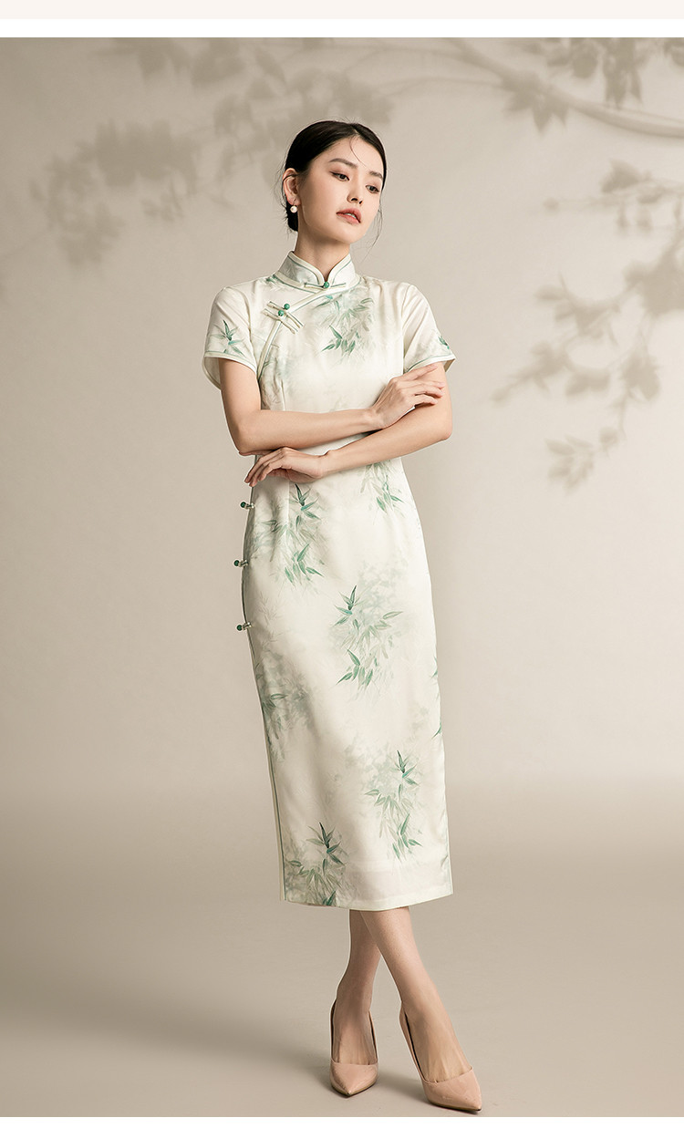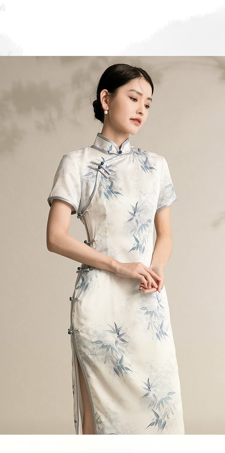 改良版国风中式旗袍浅色系温柔典雅连衣裙复古修身旗袍 315871