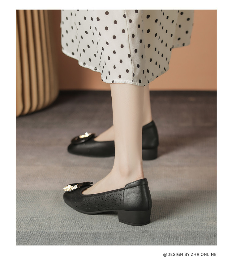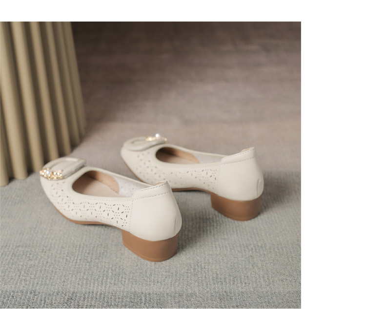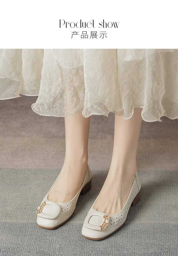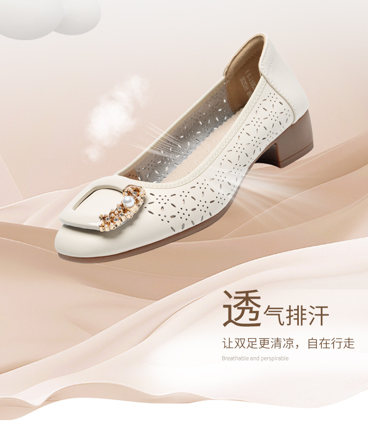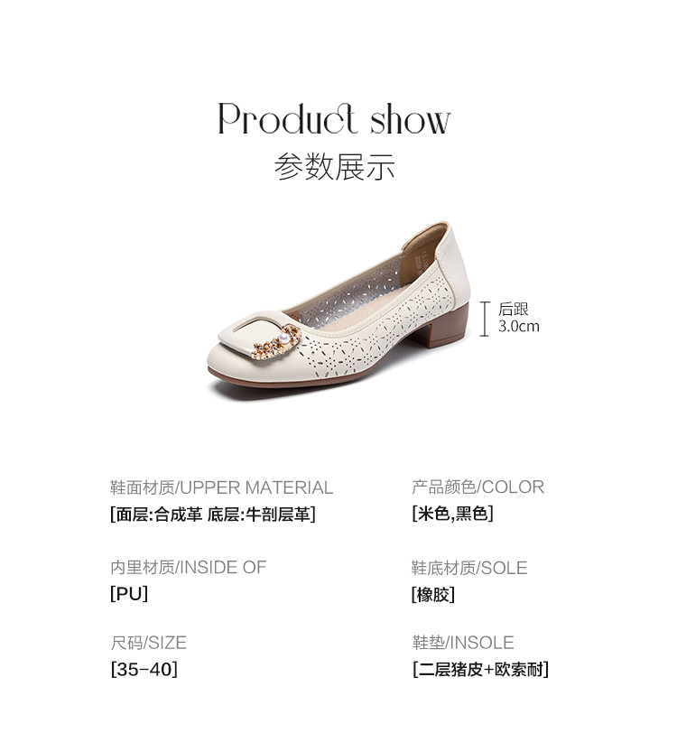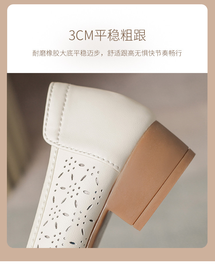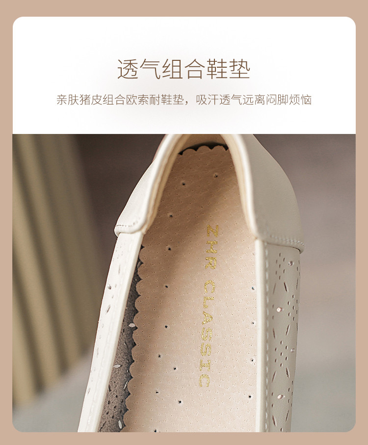 商品名称:【镂空透气】粗跟单鞋平底鞋夏季通勤鞋一脚蹬女鞋奶奶鞋女士单鞋 911232