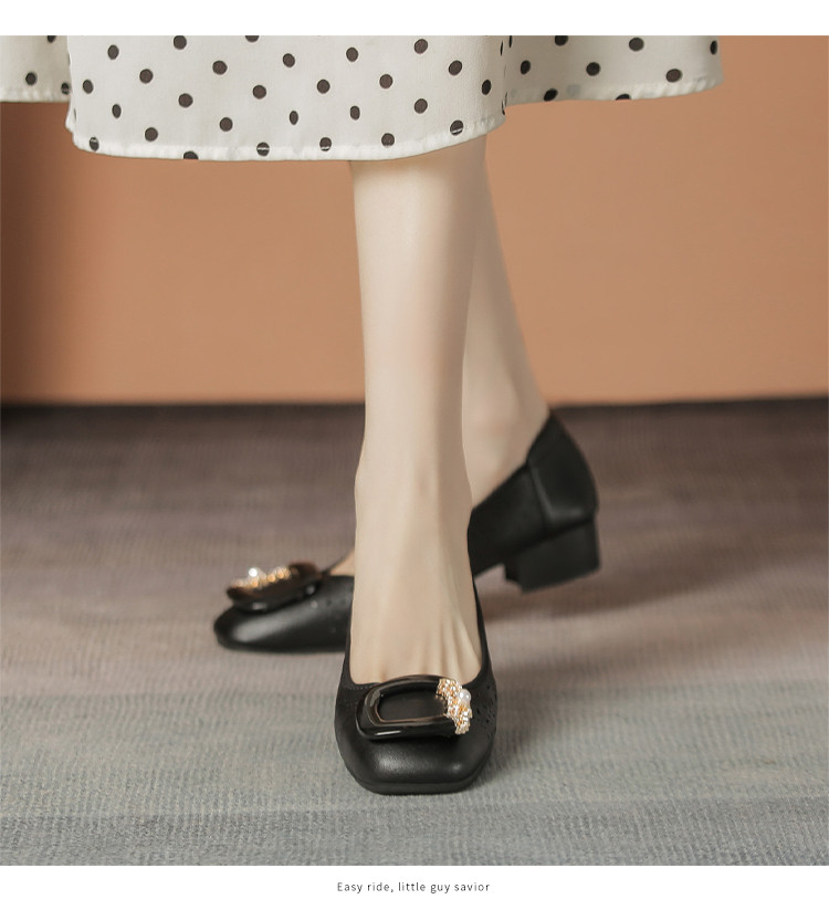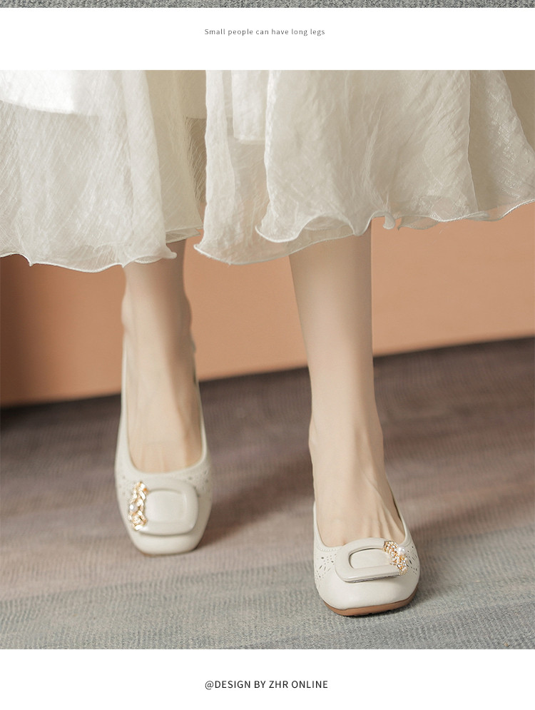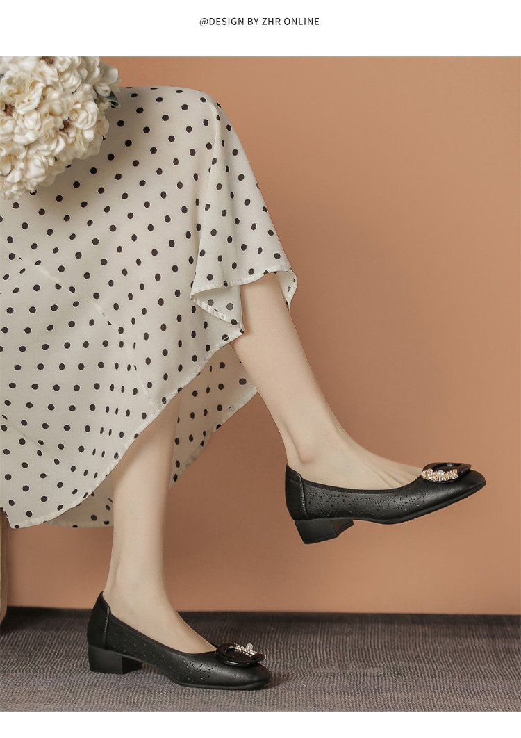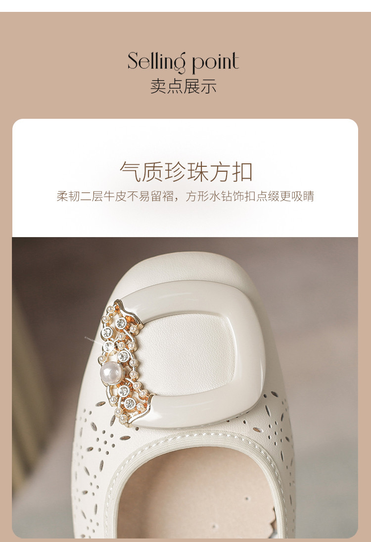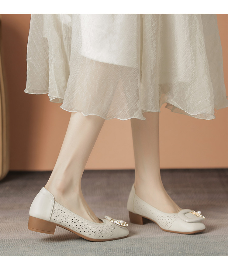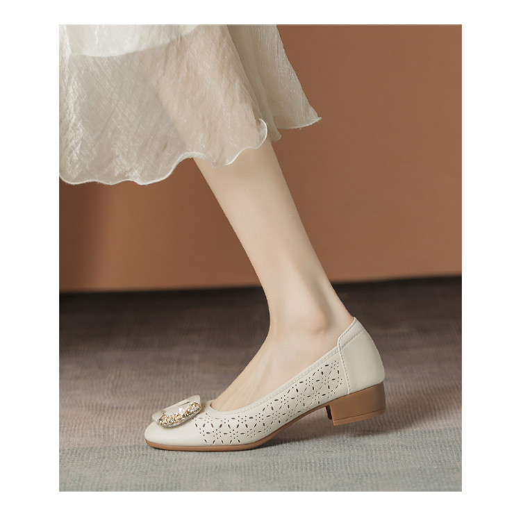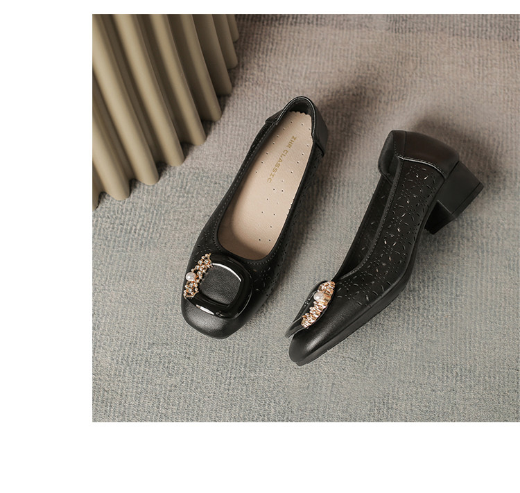 商品名称:【镂空透气】粗跟单鞋平底鞋夏季通勤鞋一脚蹬女鞋奶奶鞋女士单鞋 911232