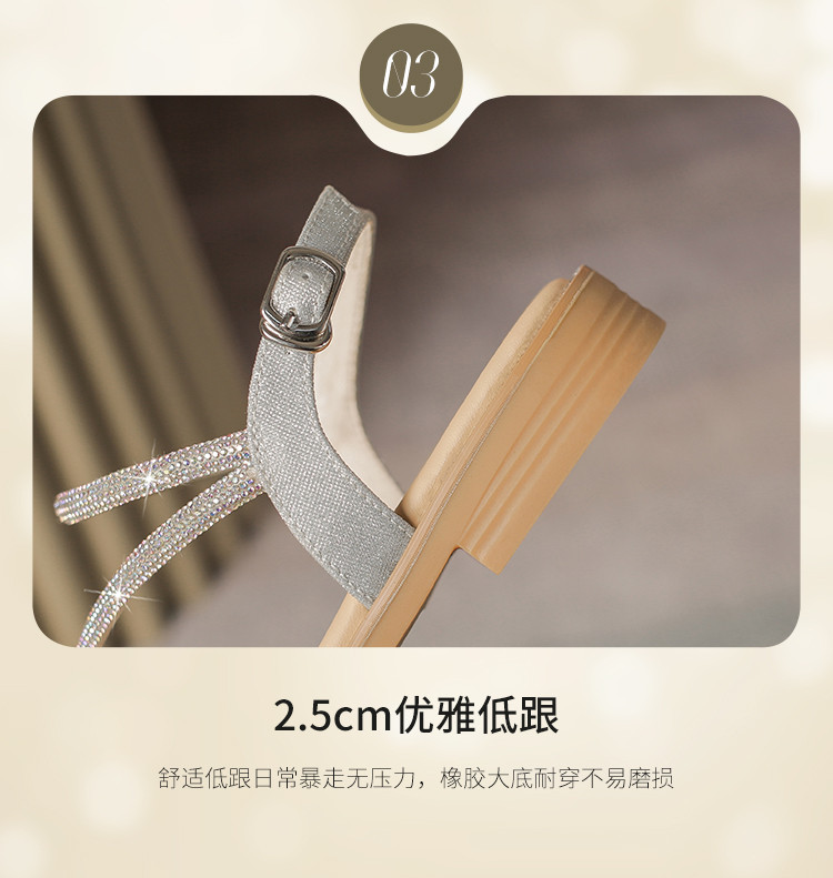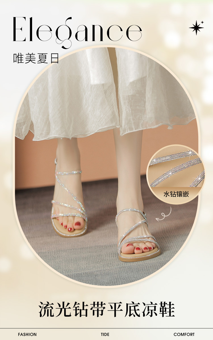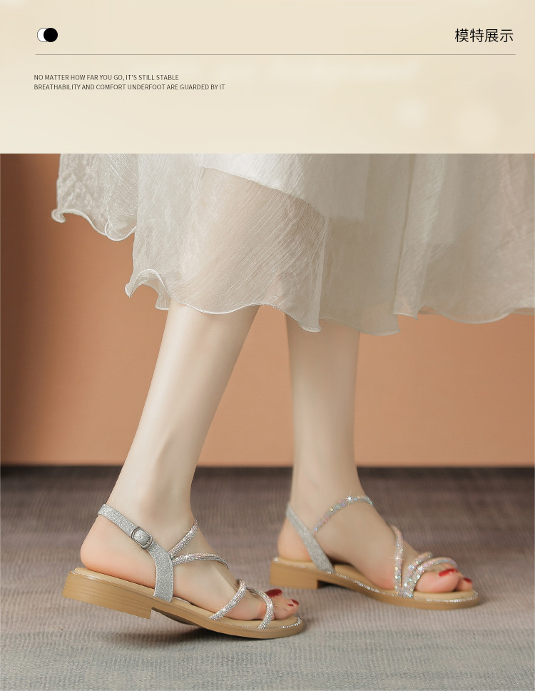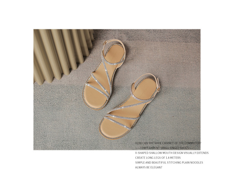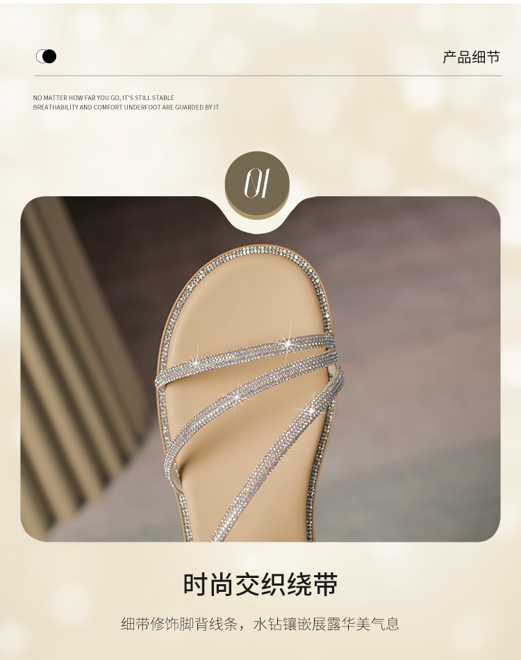 商品名称:【璀璨星钻】百搭一字带女凉鞋沙滩鞋女夏季凉鞋罗马凉鞋女士凉鞋 044288