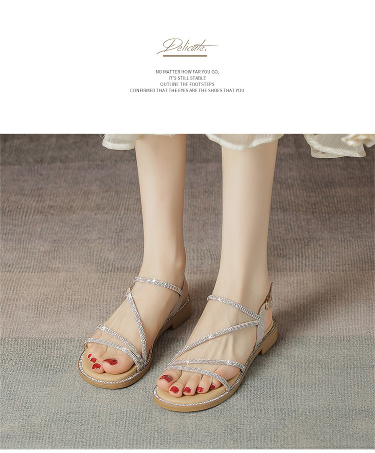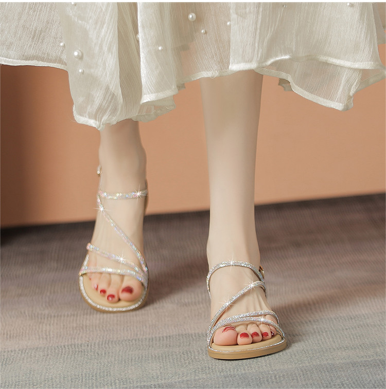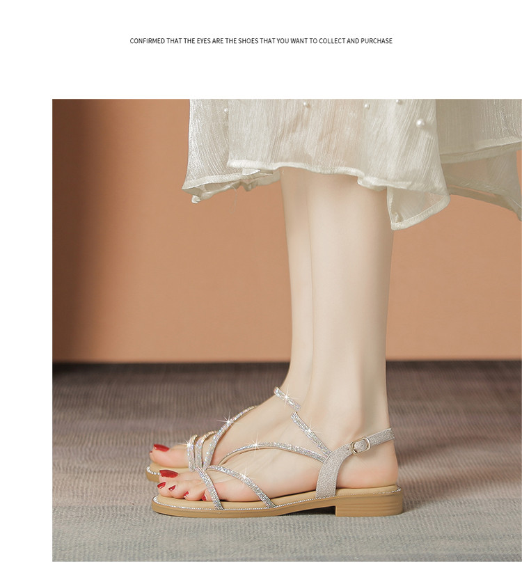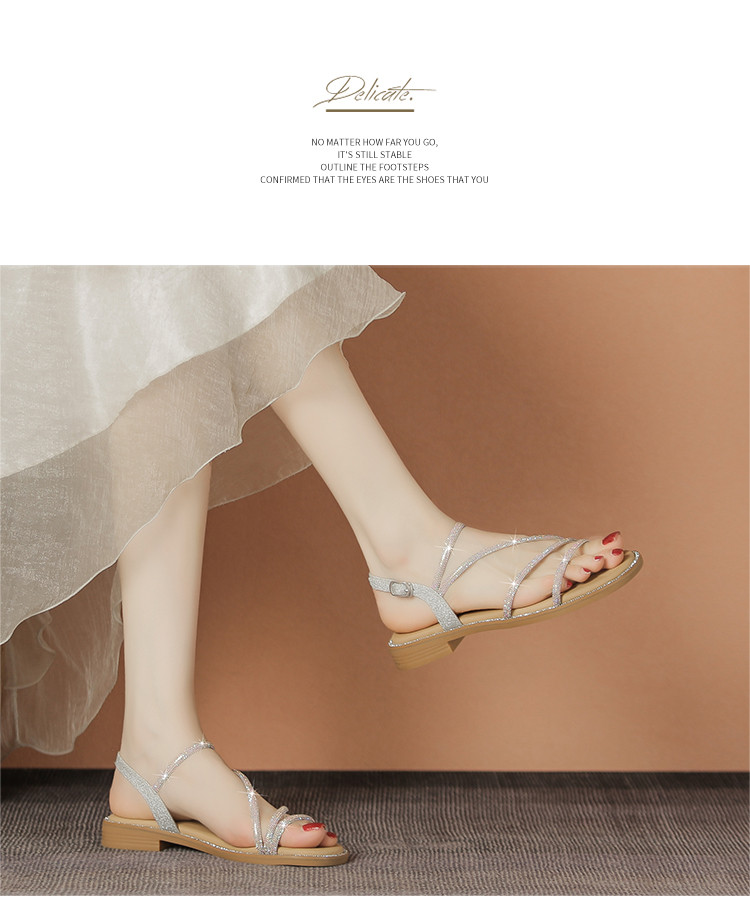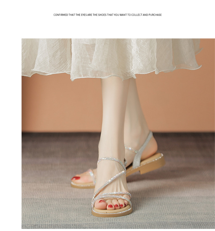 商品名称:【璀璨星钻】百搭一字带女凉鞋沙滩鞋女夏季凉鞋罗马凉鞋女士凉鞋 044288