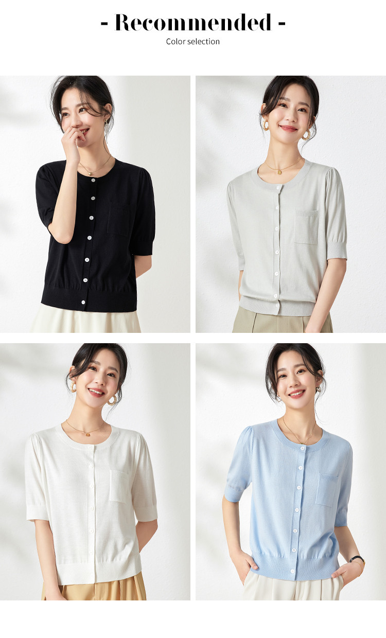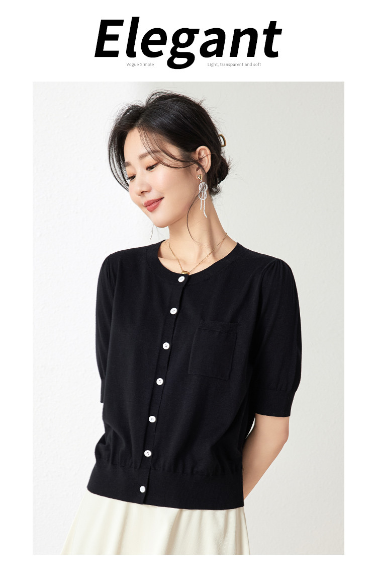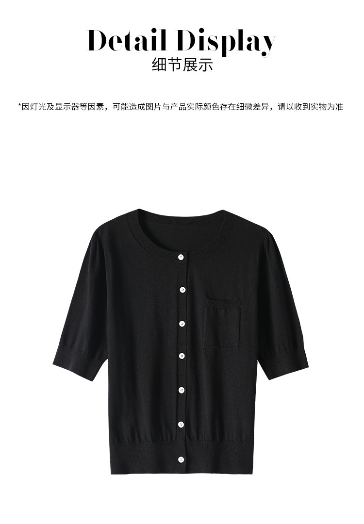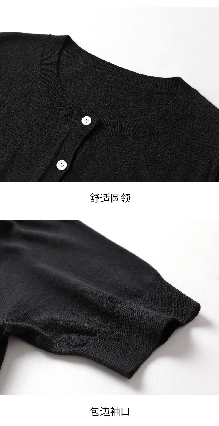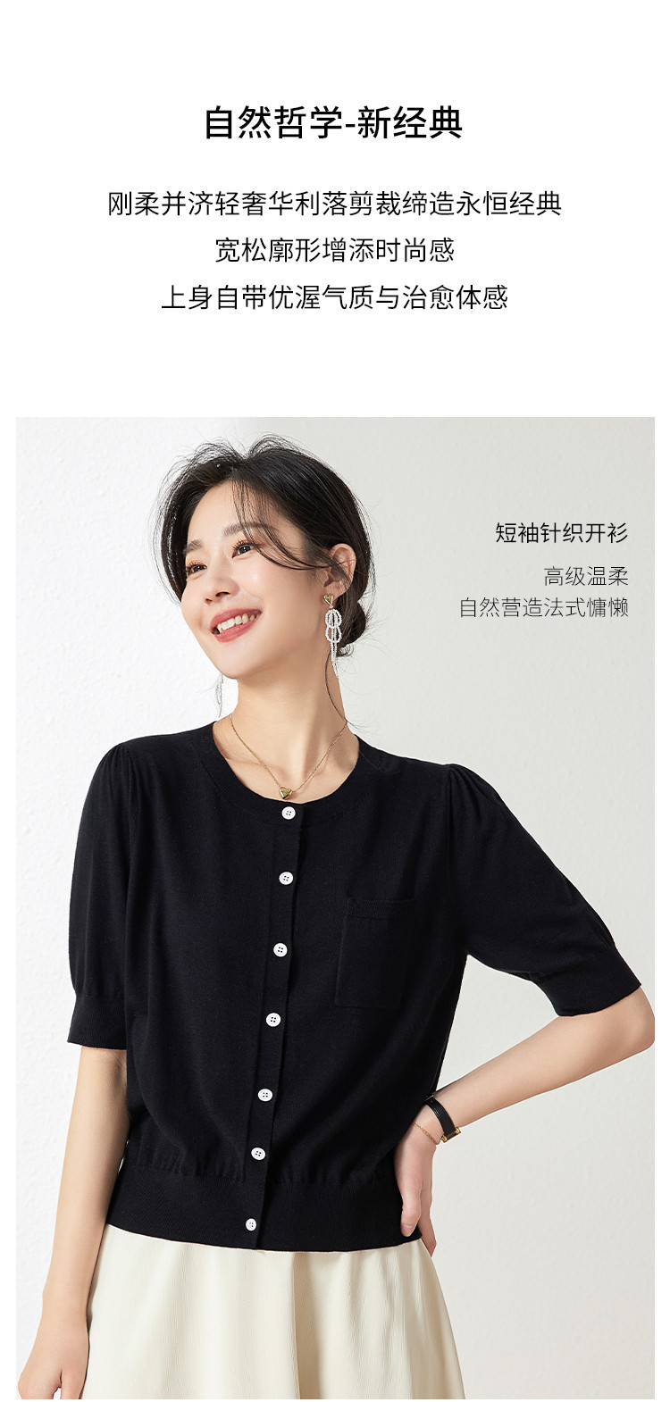 商品名称:【含桑蚕丝】圆领轻薄透气针织衫女开衫短袖毛衣外套 652435