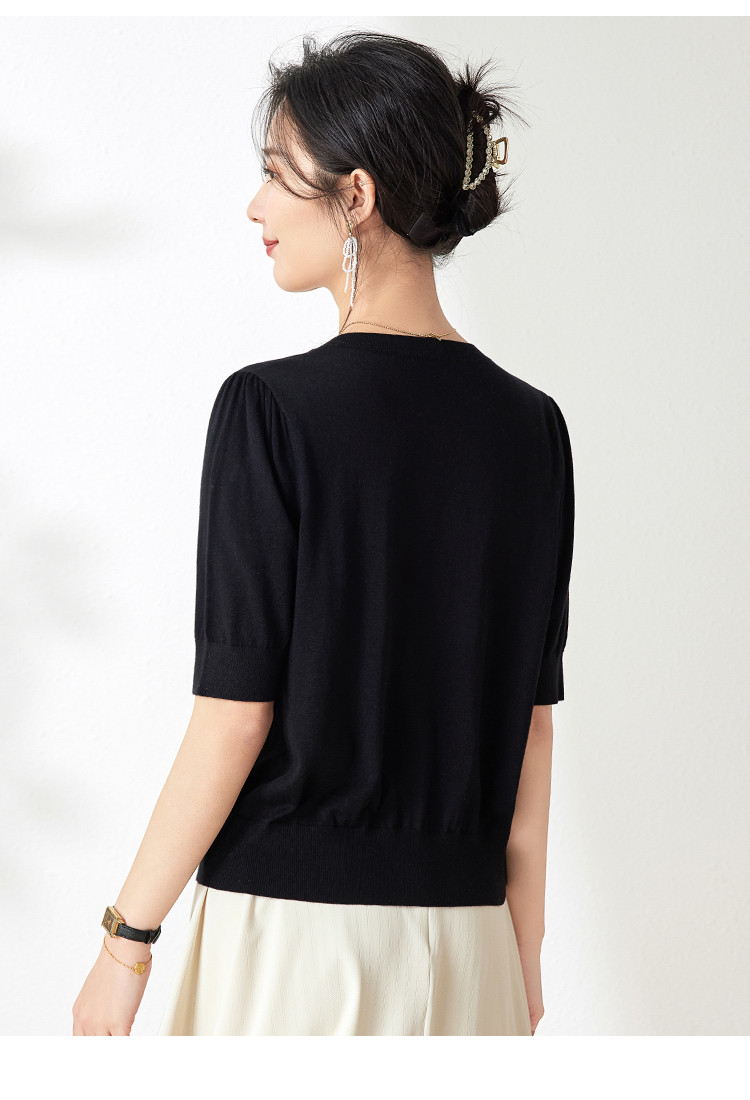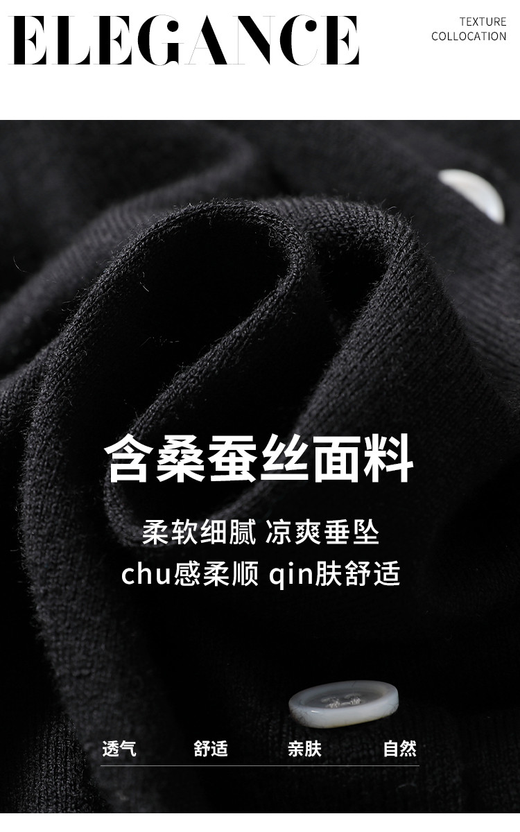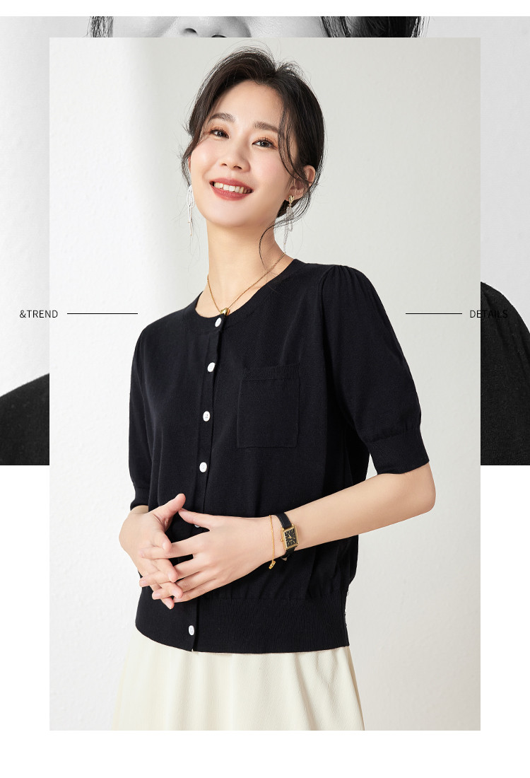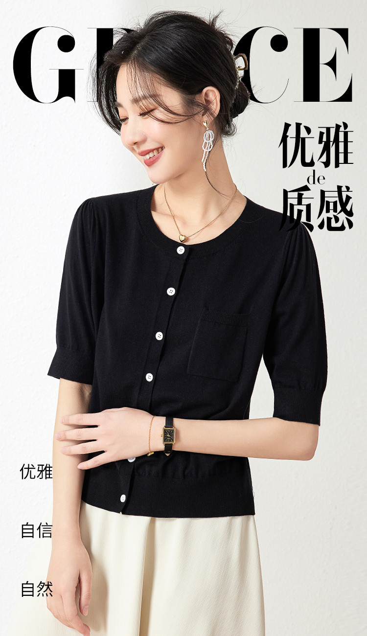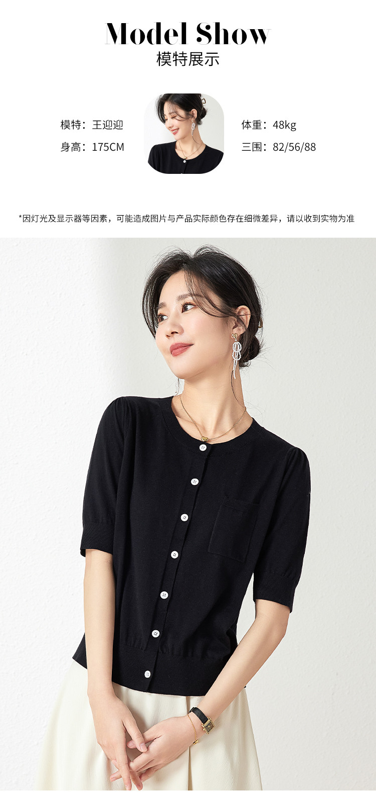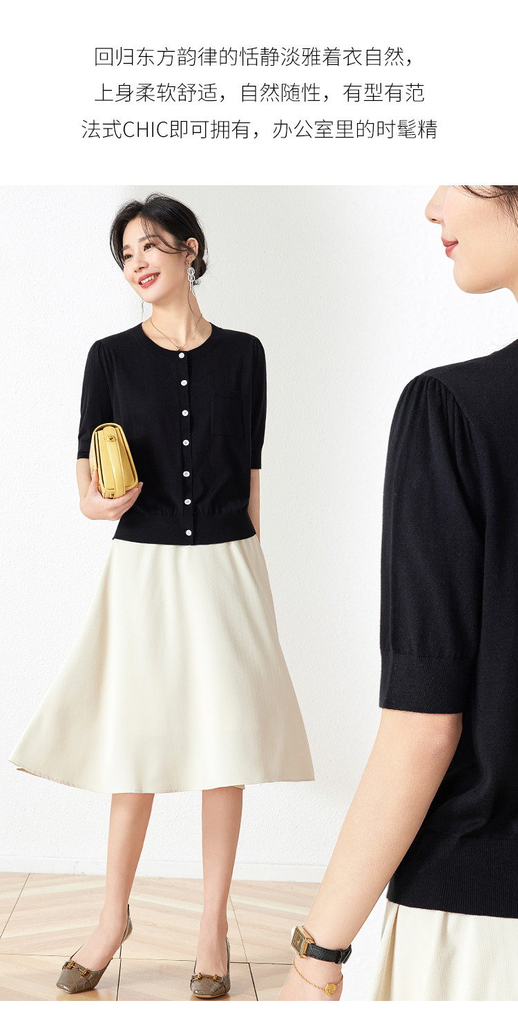 商品名称:【含桑蚕丝】圆领轻薄透气针织衫女开衫短袖毛衣外套 652435