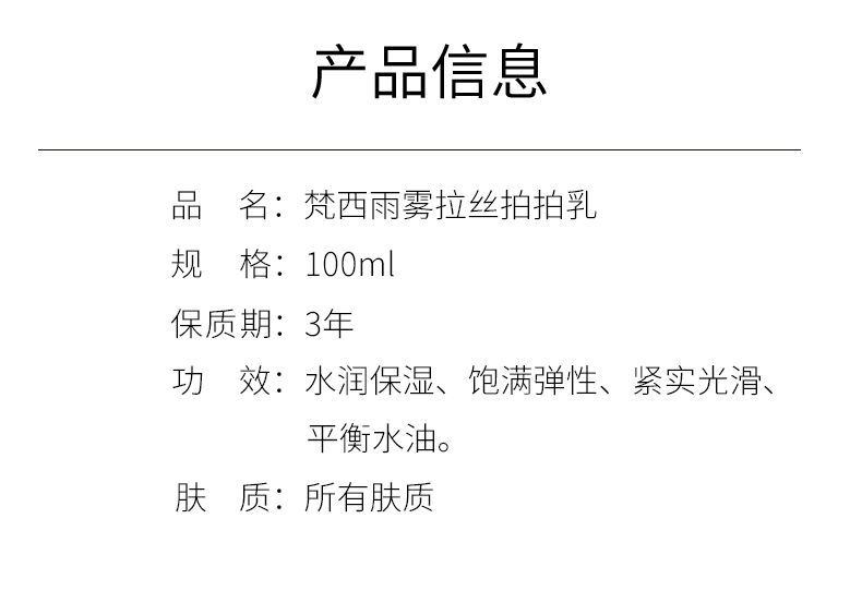 商品名称:梵西雨雾拉丝拍拍乳 100ml/瓶*2 保湿补水胶原蛋白