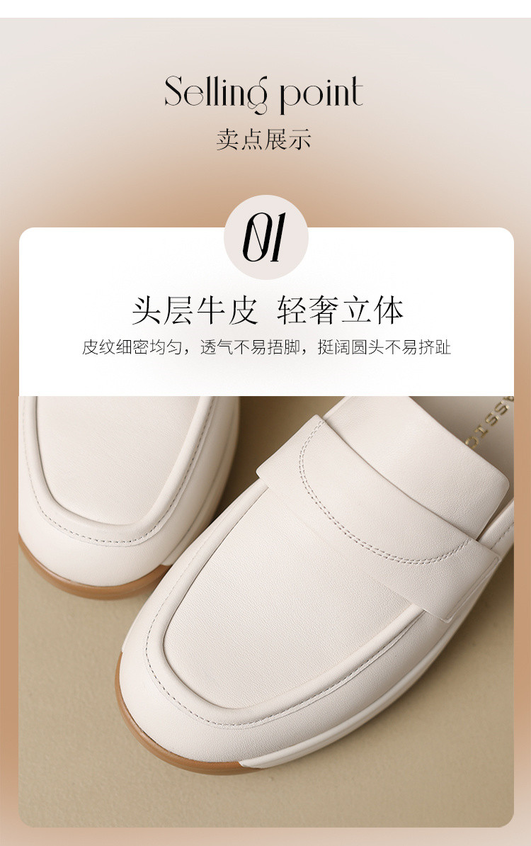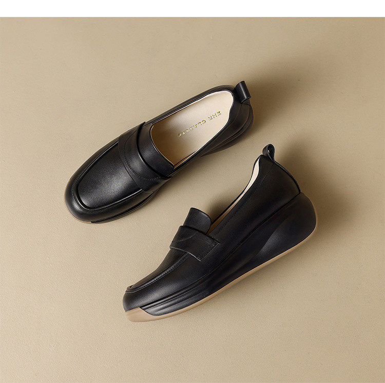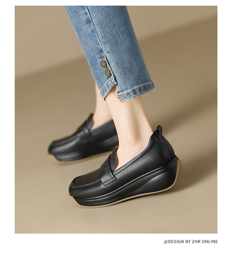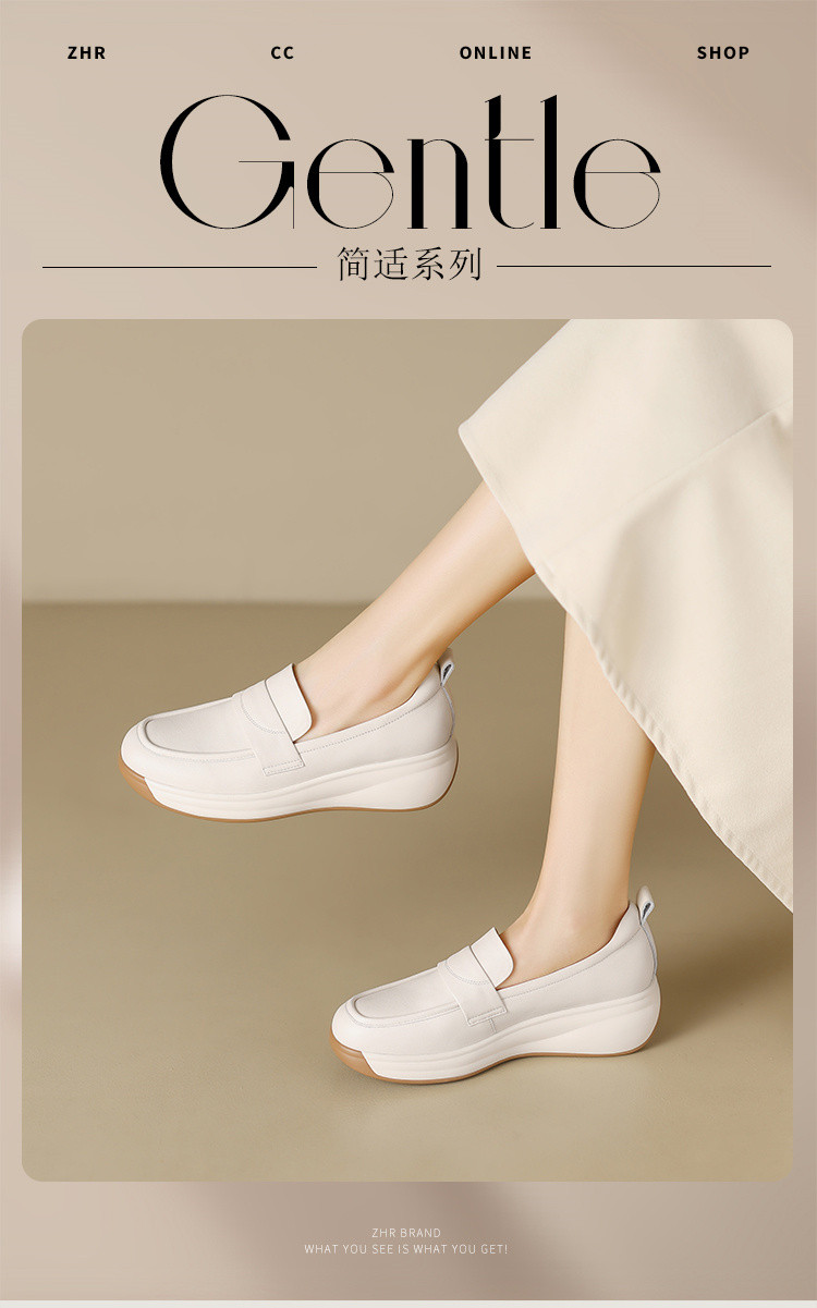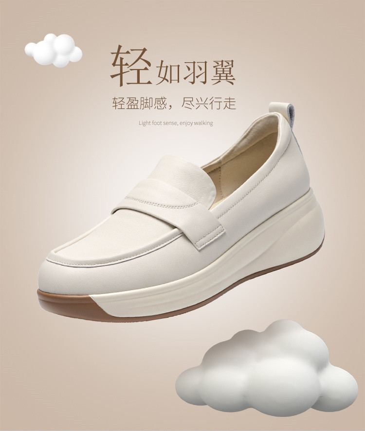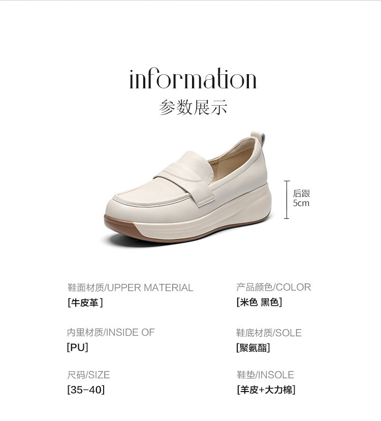 商品名称:【头层牛皮】一脚蹬真皮女鞋春季轻便单鞋厚底增高女鞋时尚妈妈鞋 965824