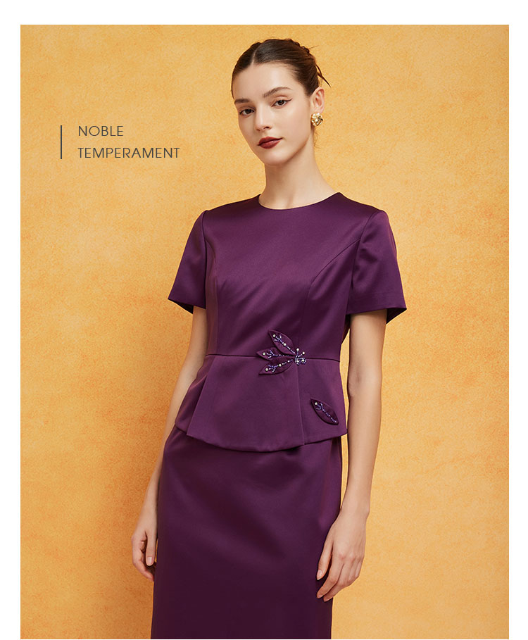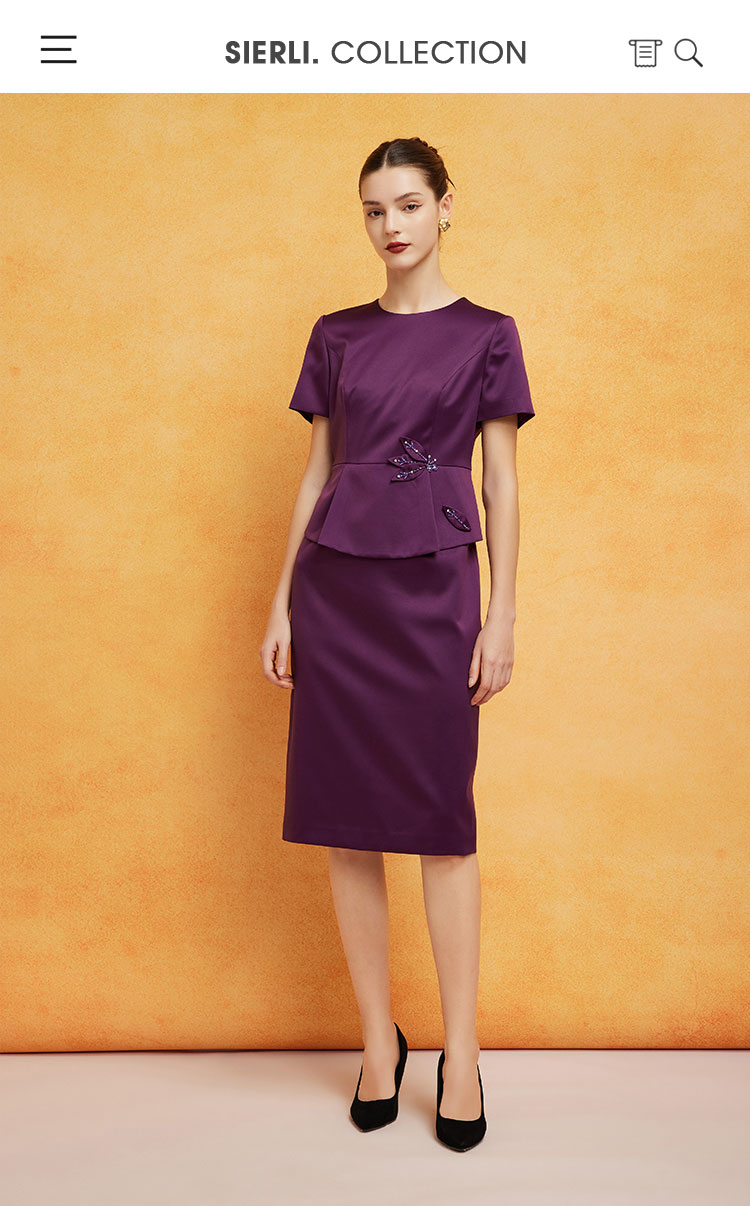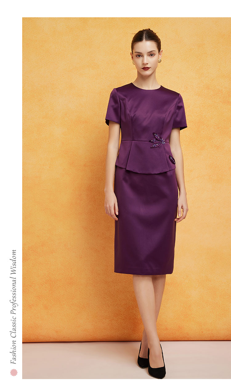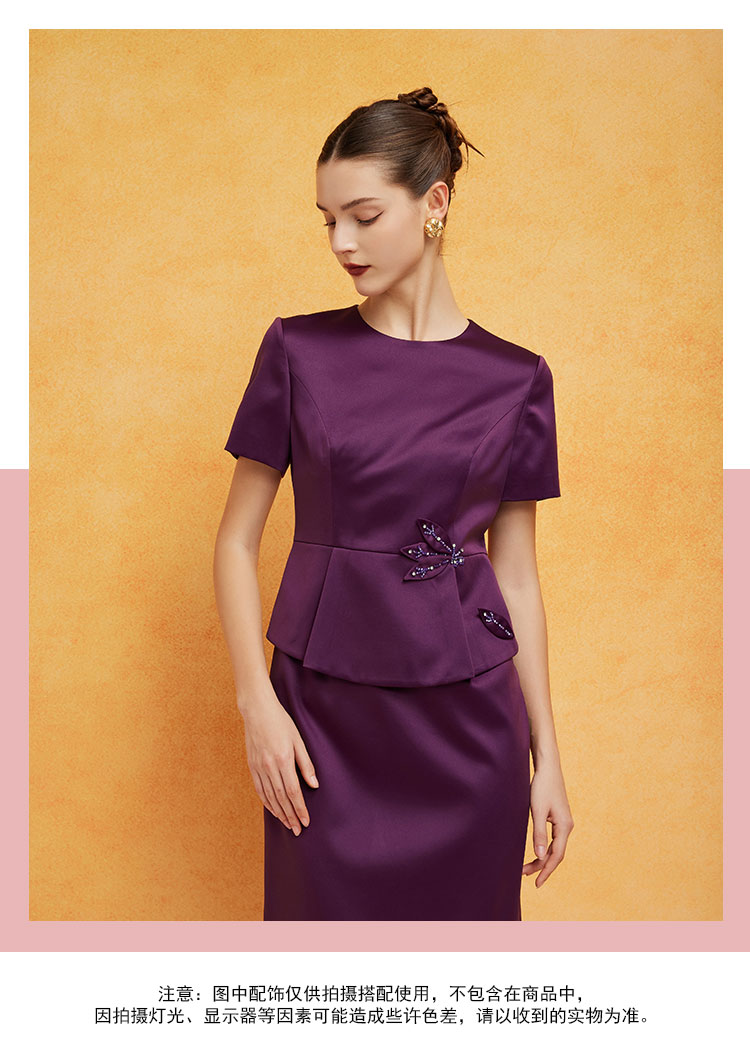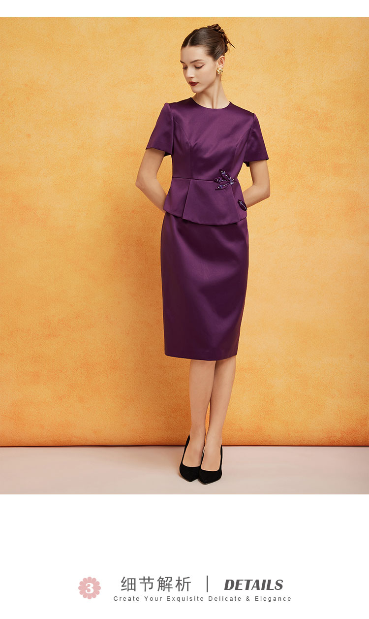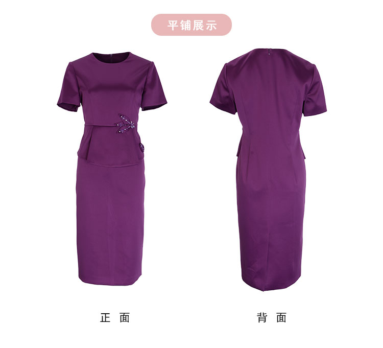 商品名称:宴会婚宴短袖版型挡小肚腩显瘦职业装假两件连衣裙 197919