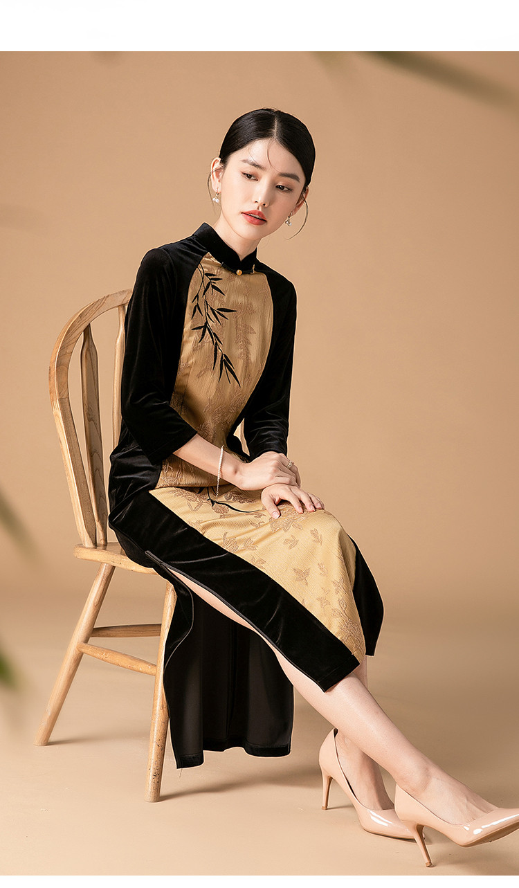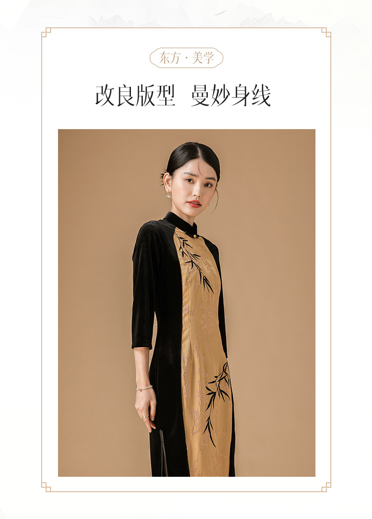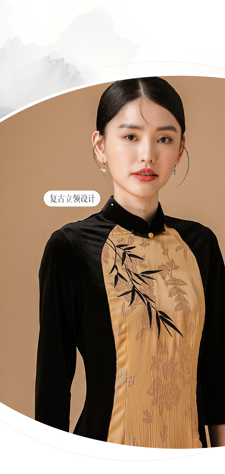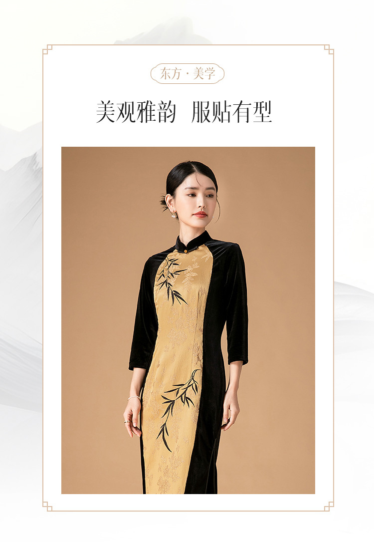 商品名称:【春秋新中式改良旗袍】丝绒连衣裙复古中式修身显瘦暗纹提花 994143