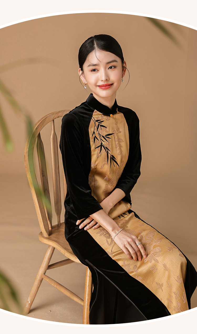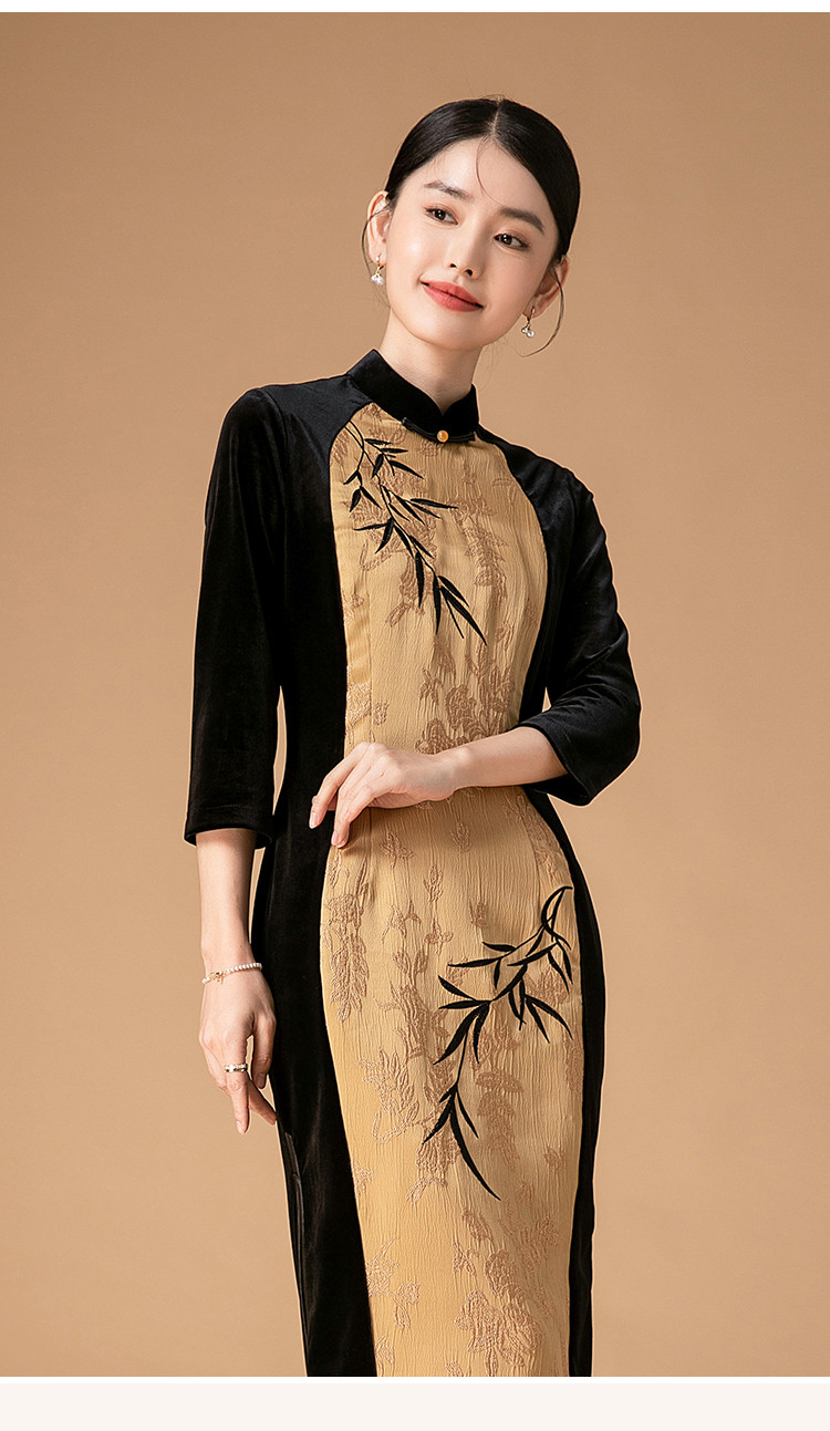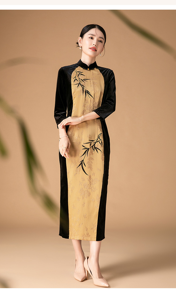 商品名称:【春秋新中式改良旗袍】丝绒连衣裙复古中式修身显瘦暗纹提花 994143