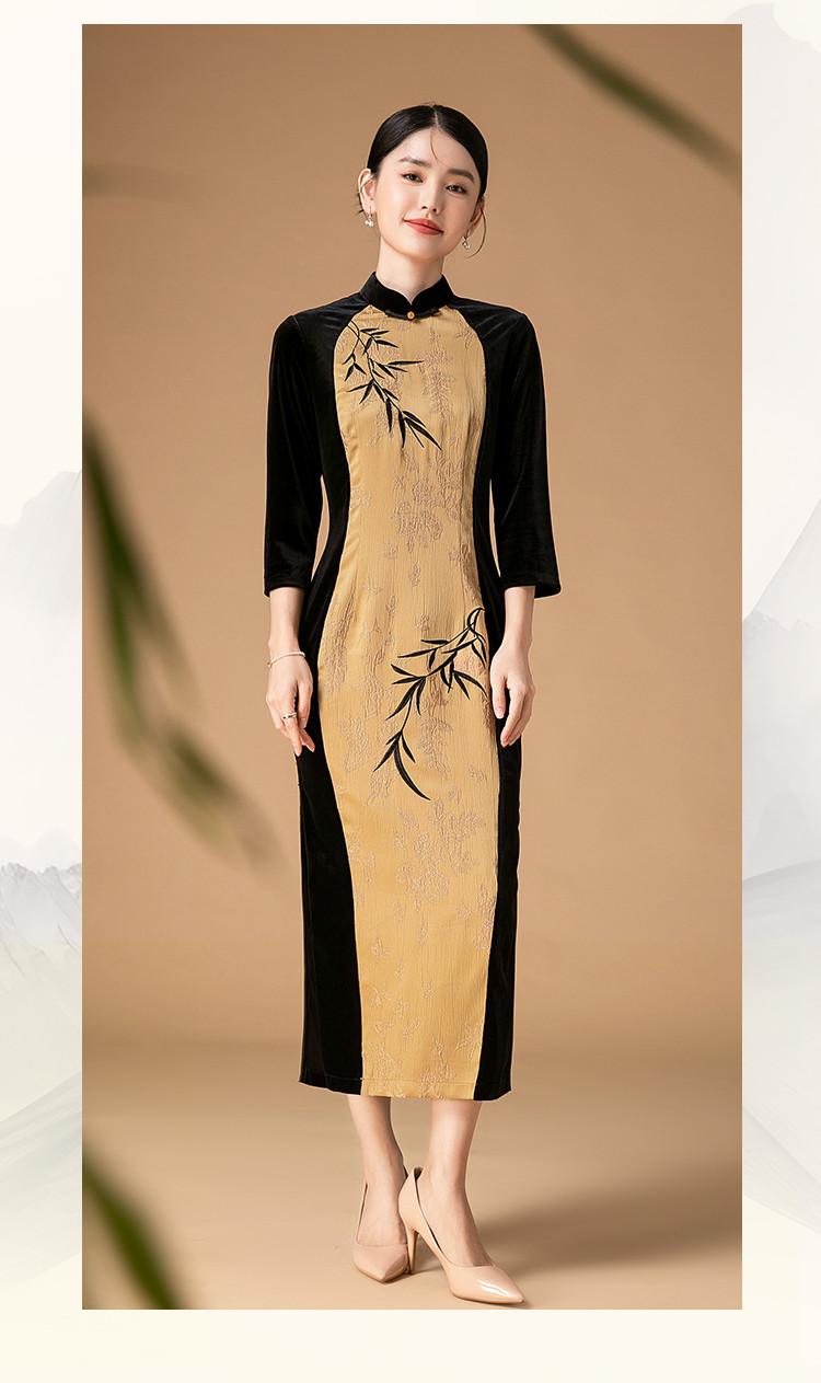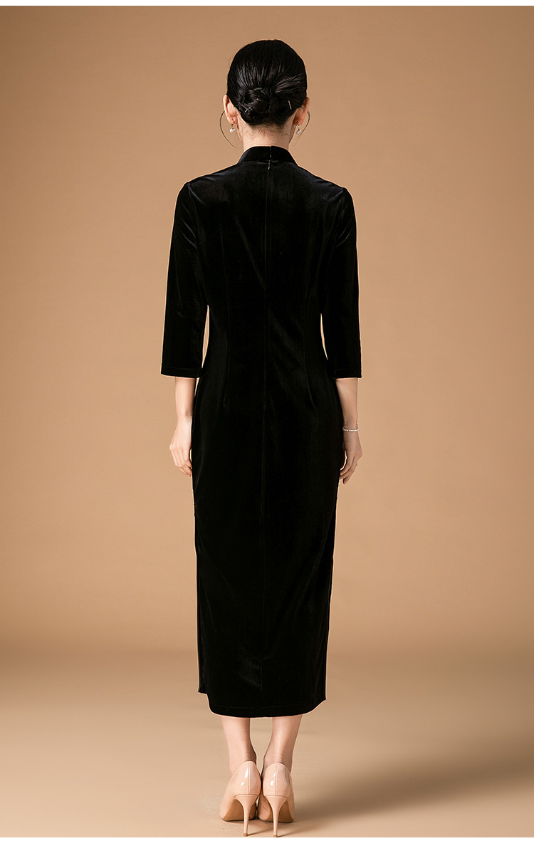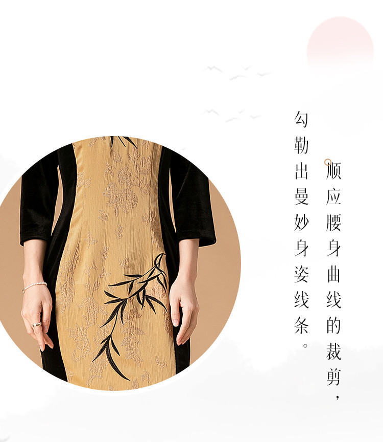 【春秋新中式改良旗袍】丝绒连衣裙复古中式修身显瘦暗纹提花 994143