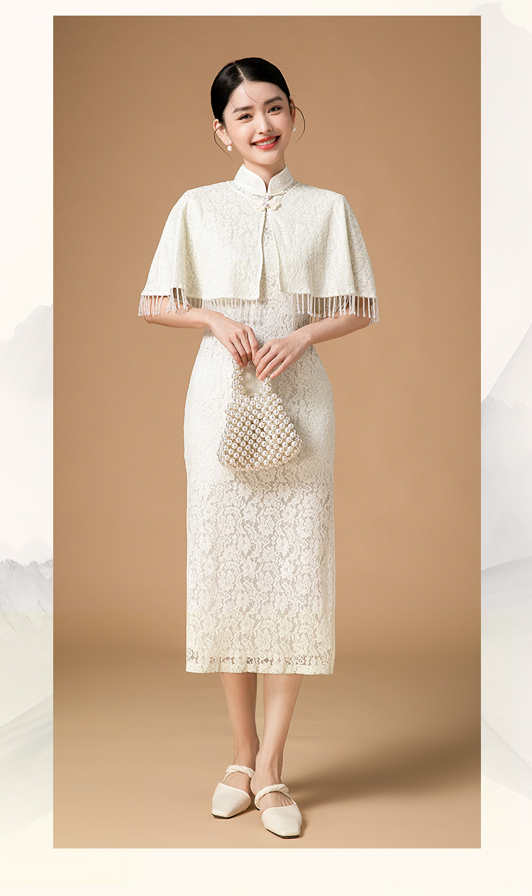 商品名称:新中式国风旗袍高级感民国小洋装连衣裙披肩套装旗袍 264479