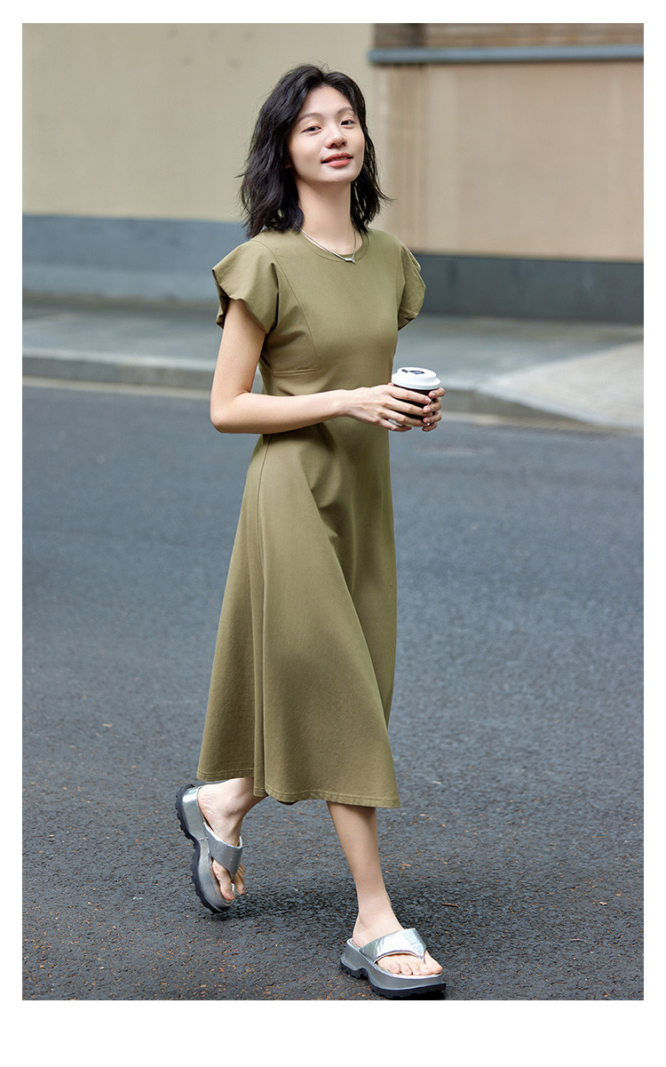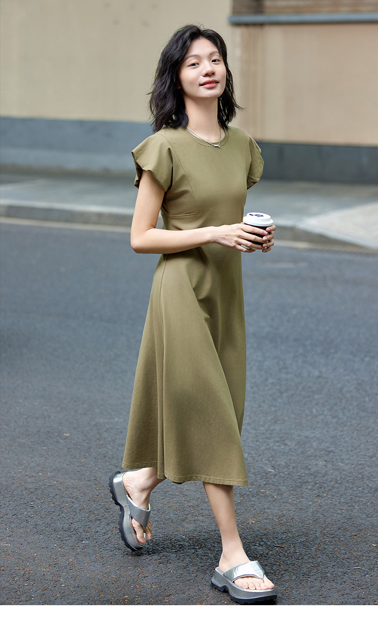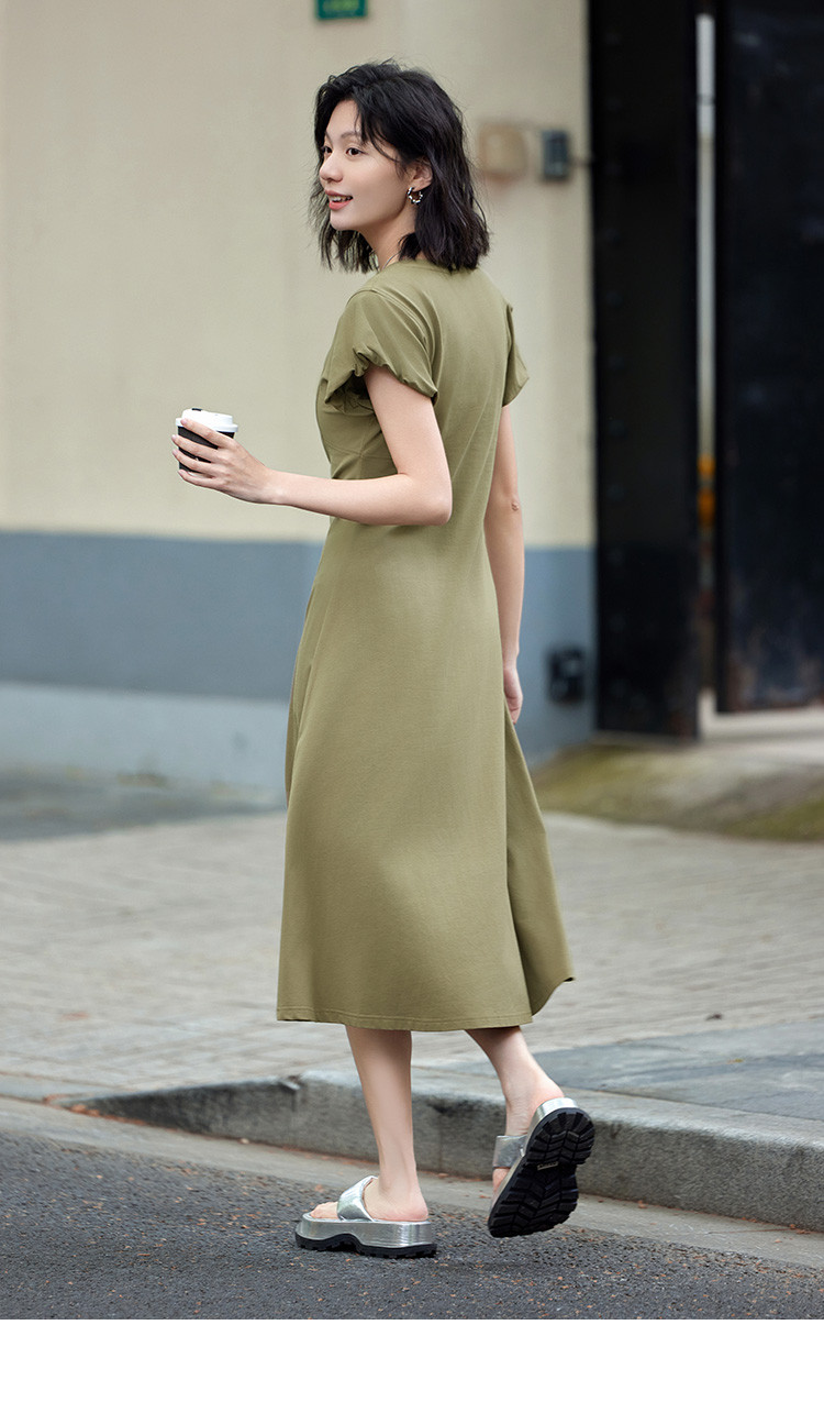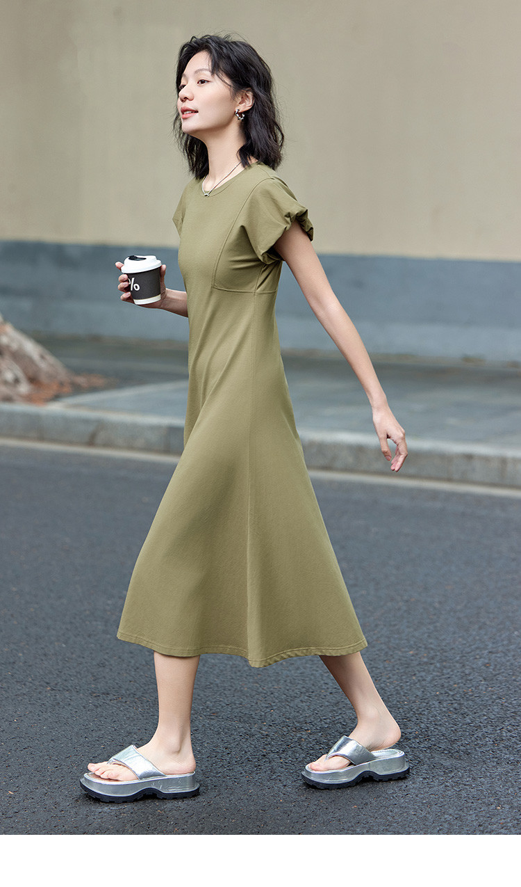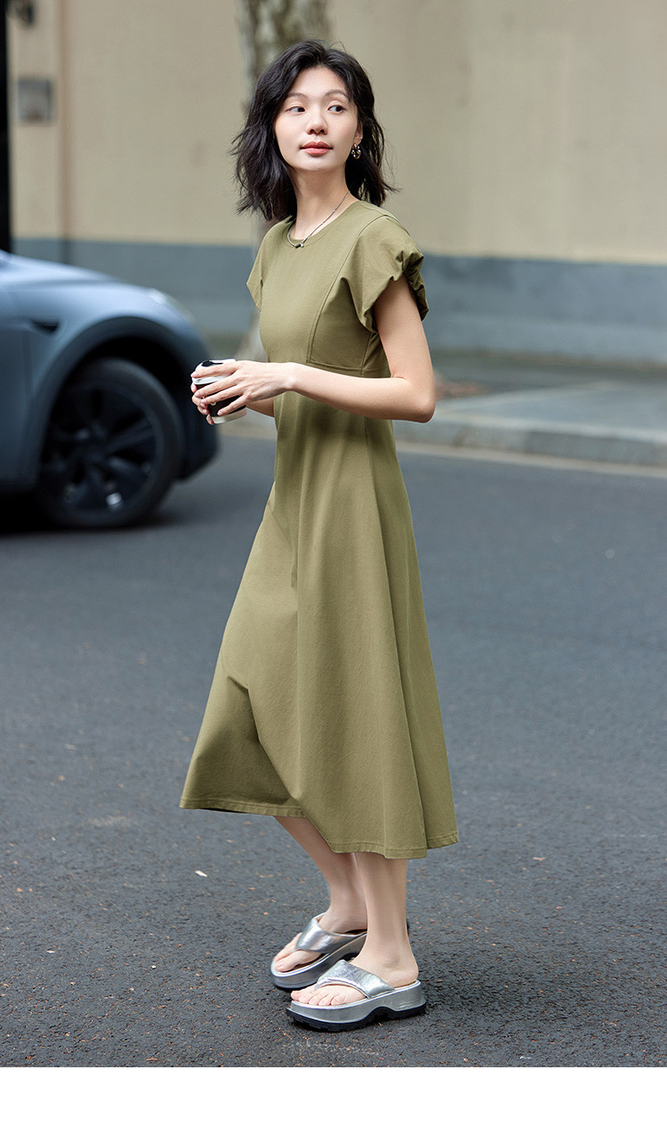 花苞袖连衣裙】夏款前后分割显腰细舒适长款连衣裙 682050