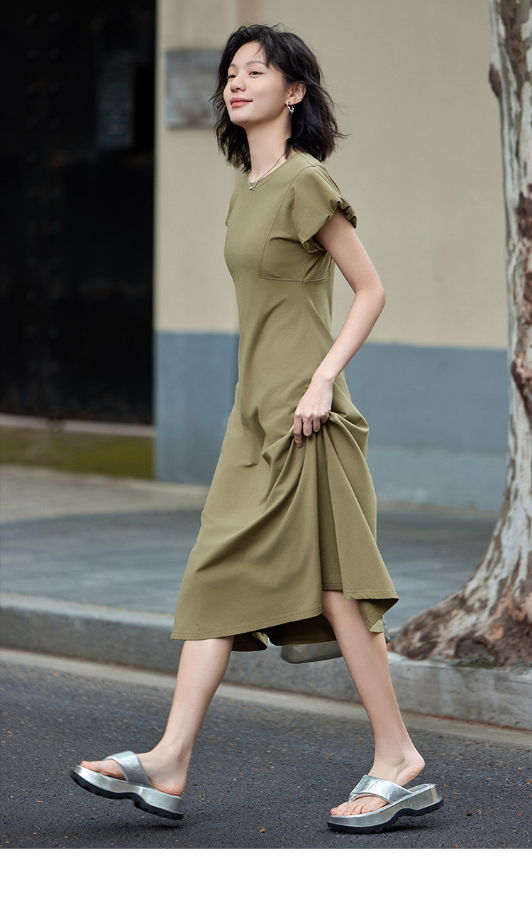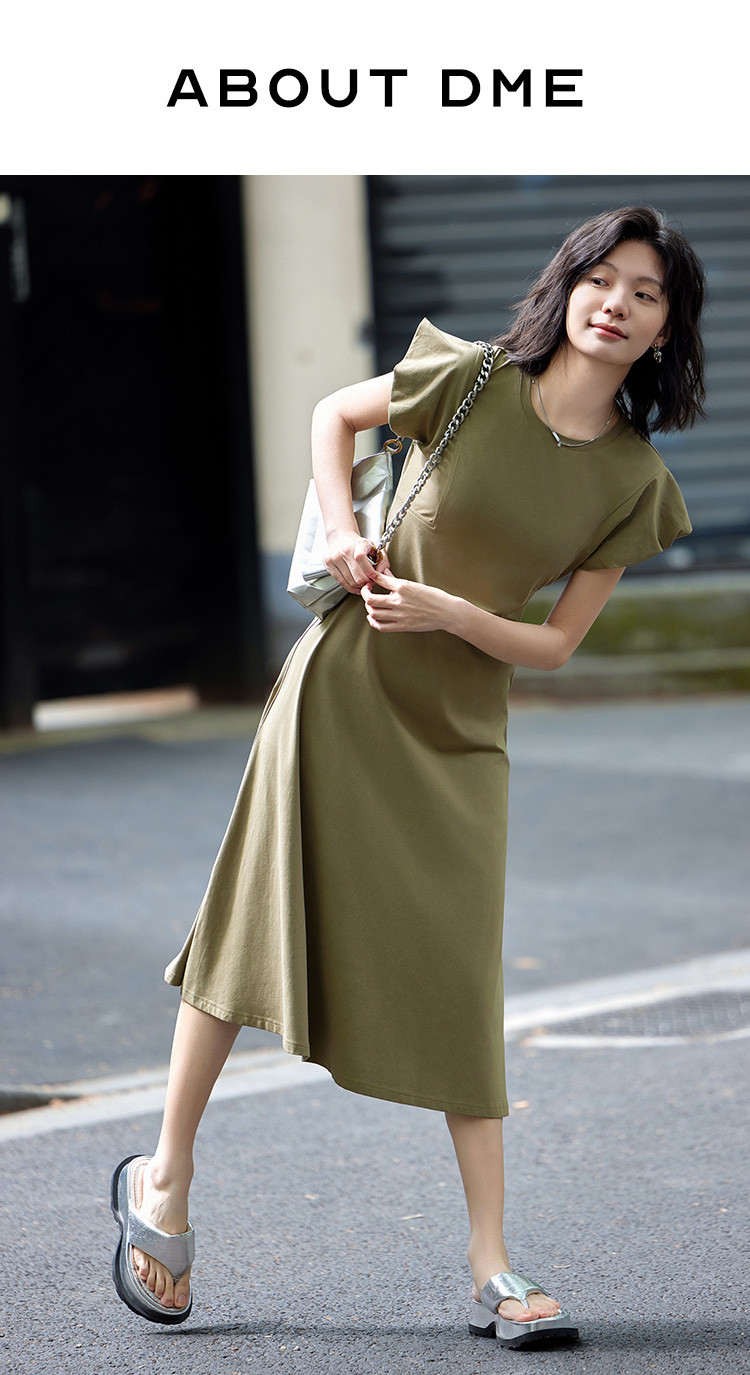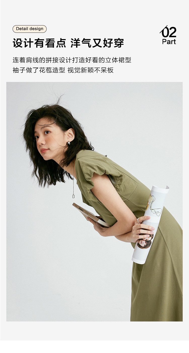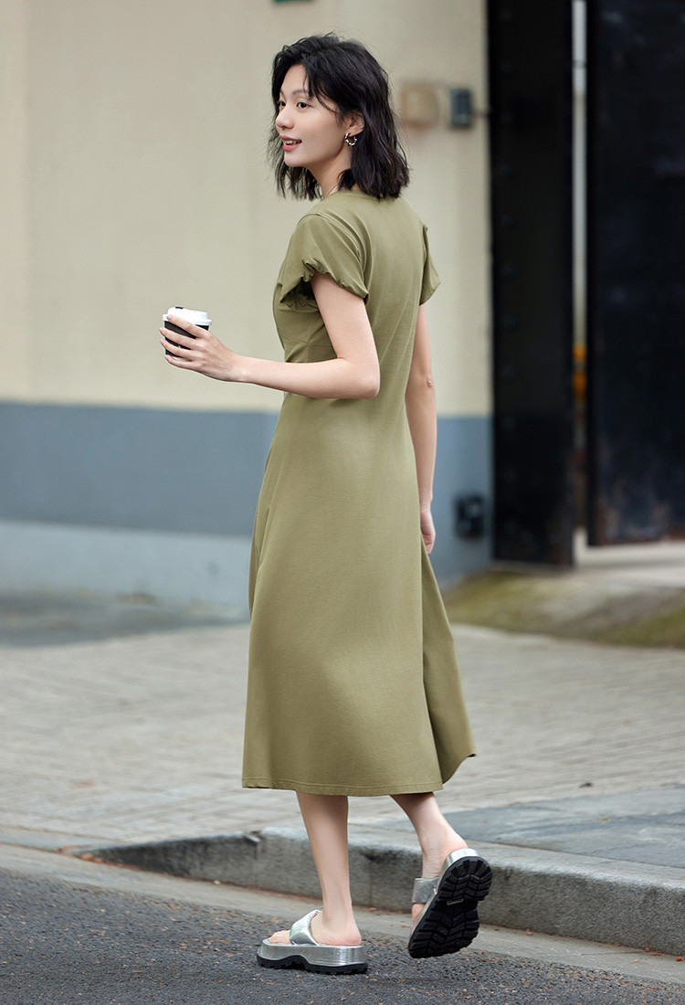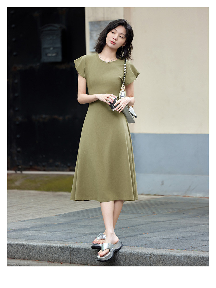 花苞袖连衣裙】夏款前后分割显腰细舒适长款连衣裙 682050