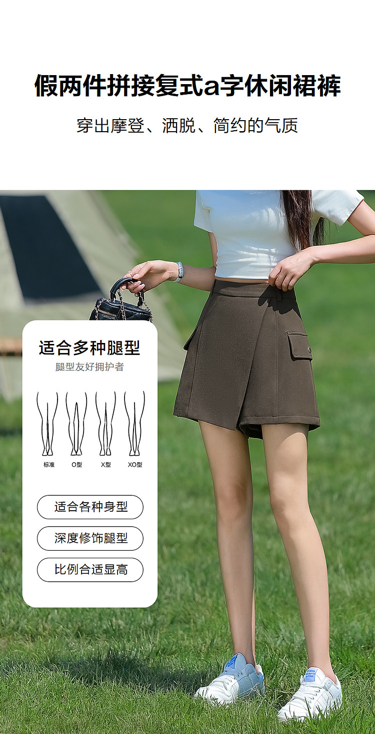 商品名称:【是假两件的快乐】春秋简约150D弹力斜纹拼接复式a字休闲裙裤 142273