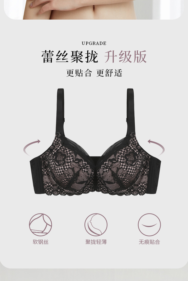 【聚拢无痕】可拆卸肩带文胸收副乳防下垂内衣女无钢圈侧收上托胸 213835