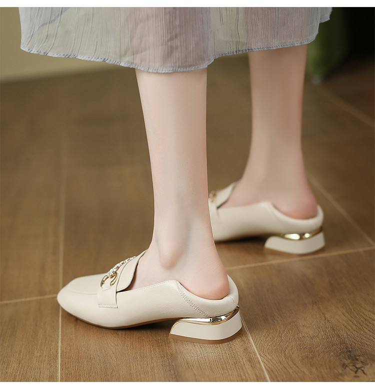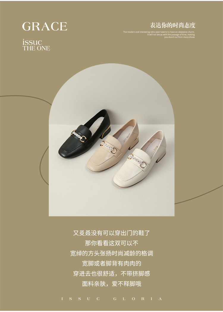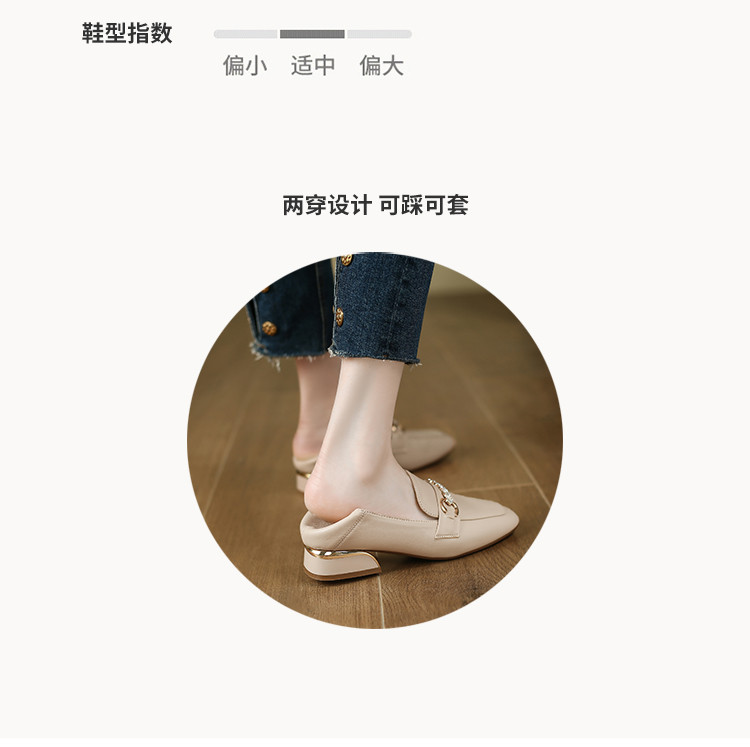 【时尚方扣】简约小皮鞋女一脚蹬通勤鞋女士气质粗跟女单鞋夏女鞋 549824
