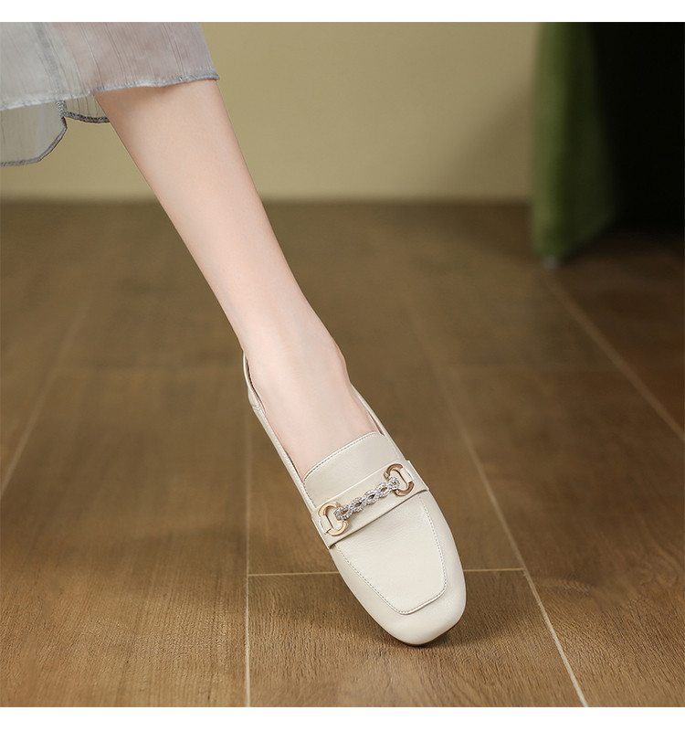 【精致水钻】职业通勤鞋女春秋款小皮鞋子一脚蹬女乐福鞋女单鞋女 755008