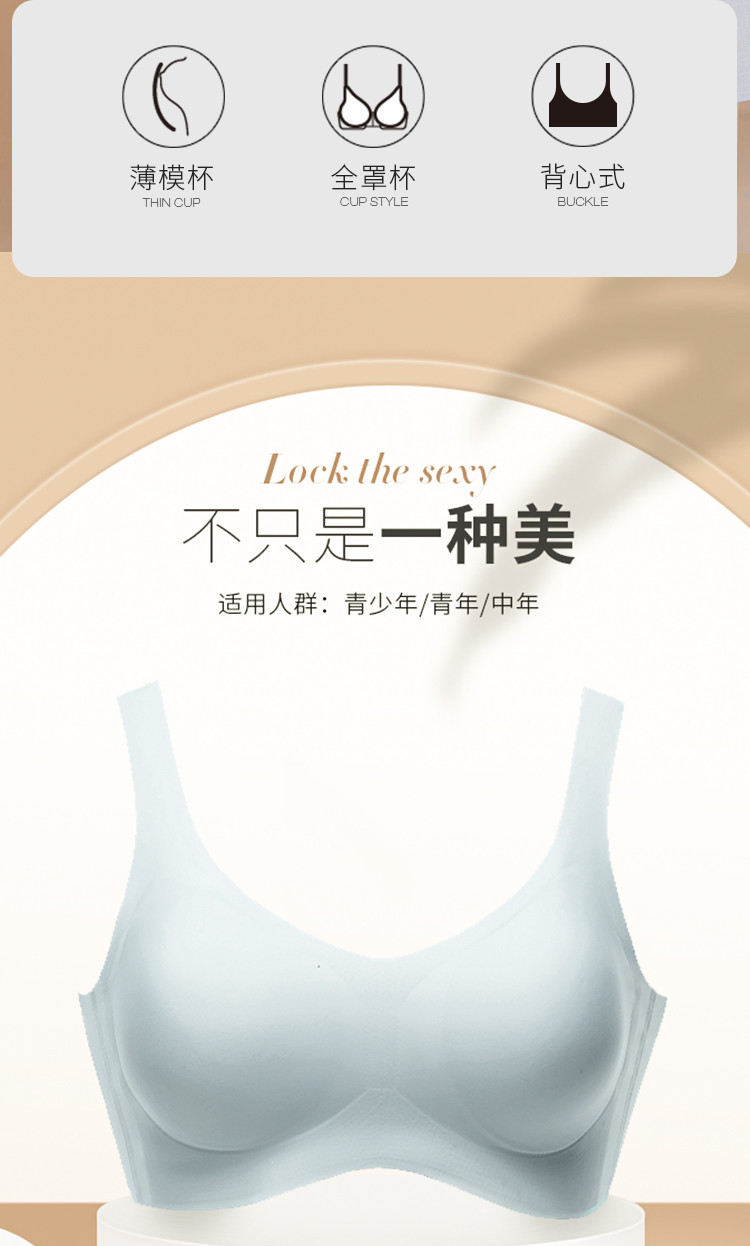 商品名称:【轻薄无痕】内衣夏季薄款女无钢圈收副乳背心式美背运动文胸罩 251595