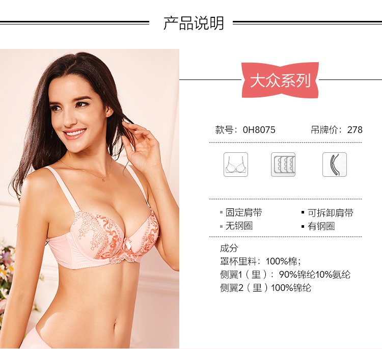 商品名称:【捡漏款】聚拢内衣文胸小胸显大薄杯夏收副乳防下垂性感蕾丝胸罩 764619