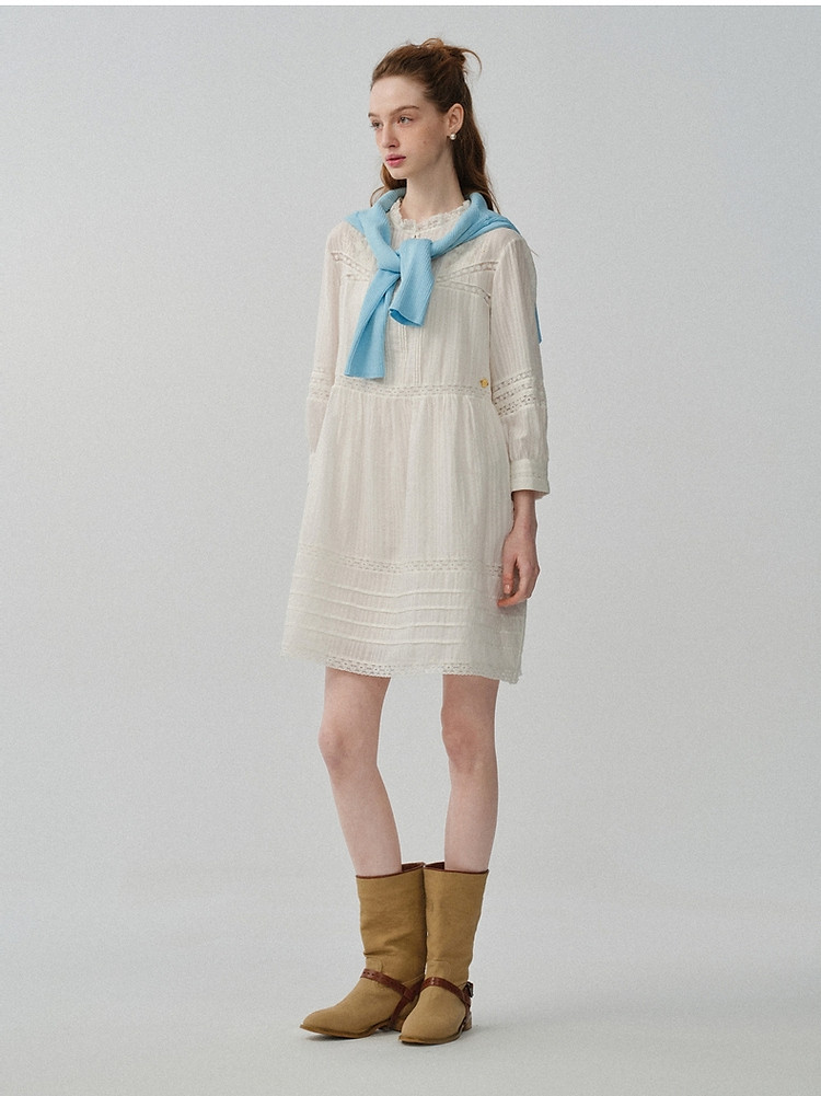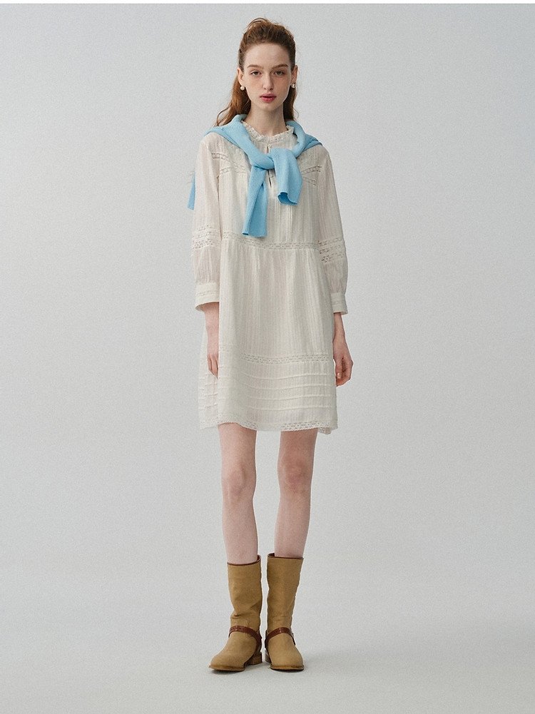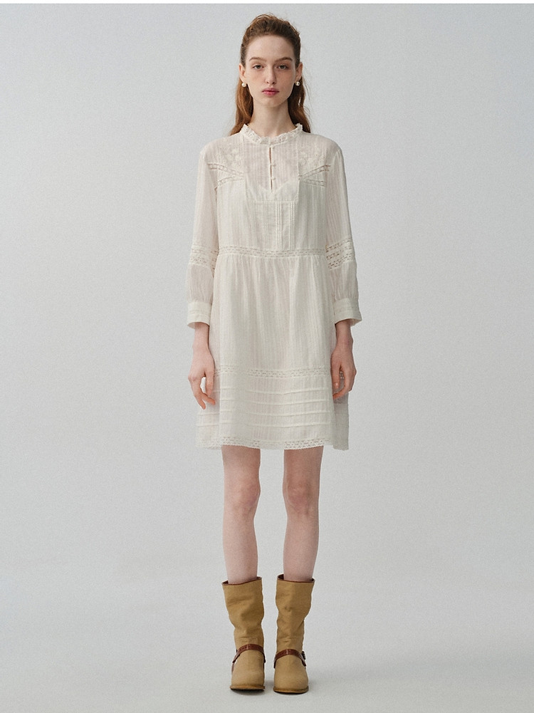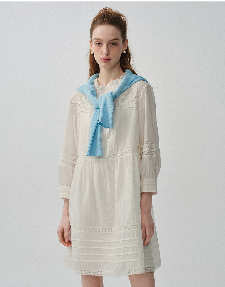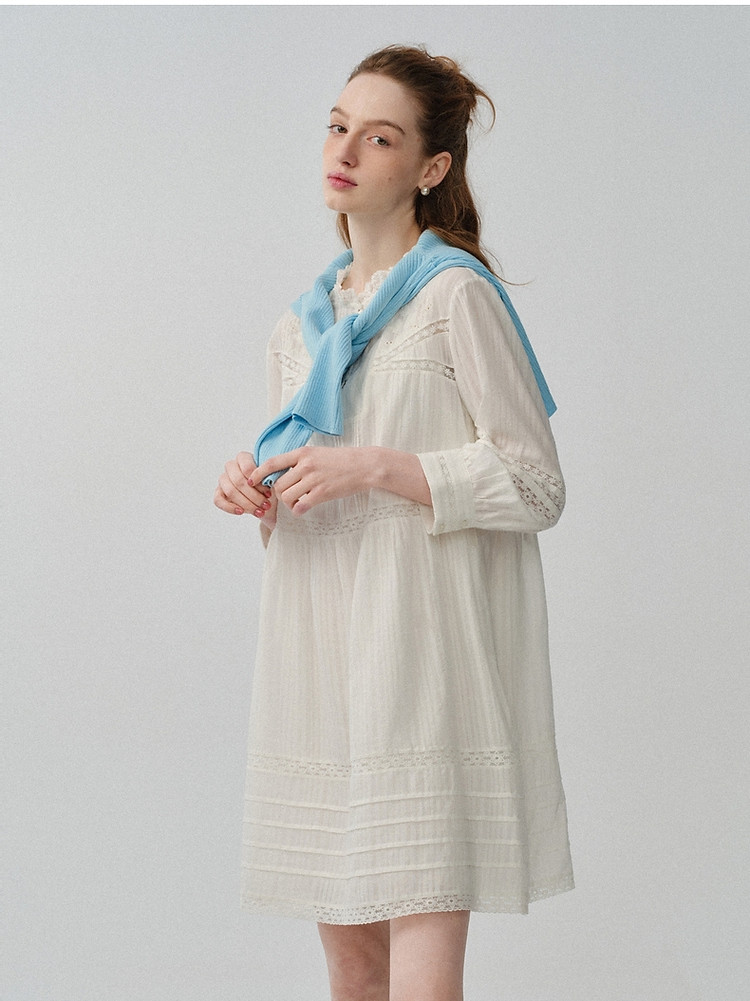 【两件套】长袖连衣裙女春夏法式浪漫蕾丝绣花裙子女 051137