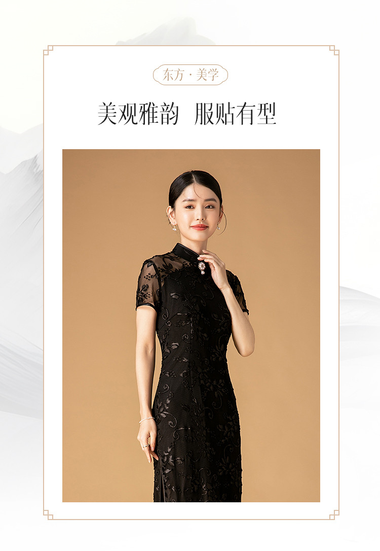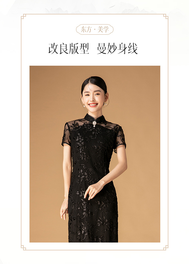 商品名称:中长款双层花绒中国风轻奢短袖时尚改良旗袍连衣裙 272671