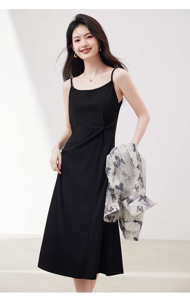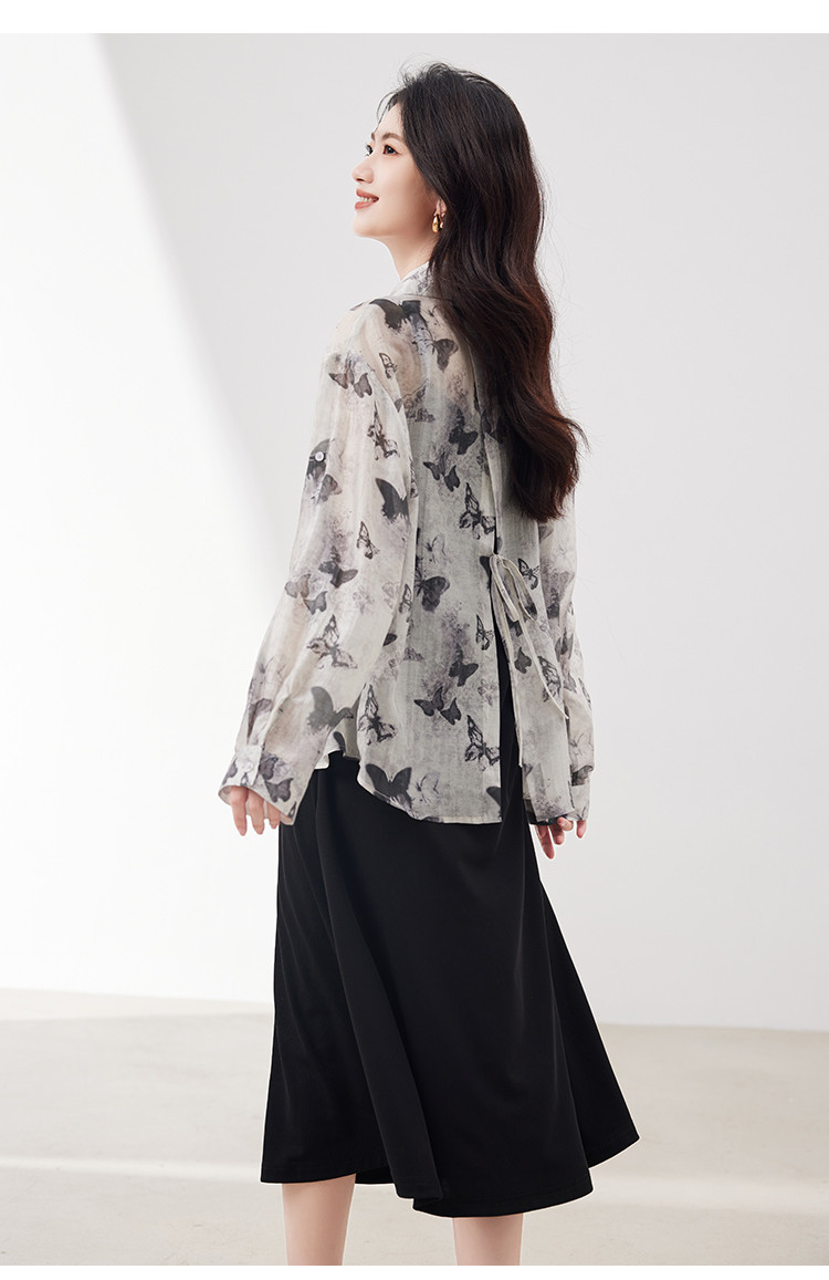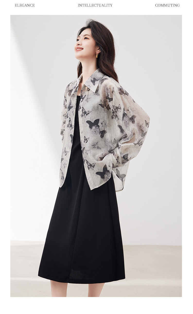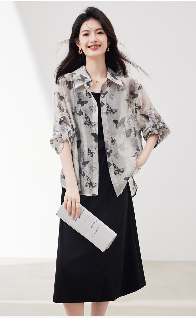后背开叉莱赛尔薄衬衫套装女2025夏季遮肚子连衣裙两件套 069400