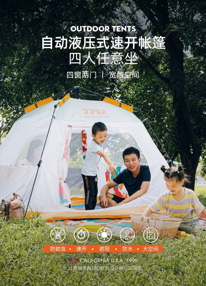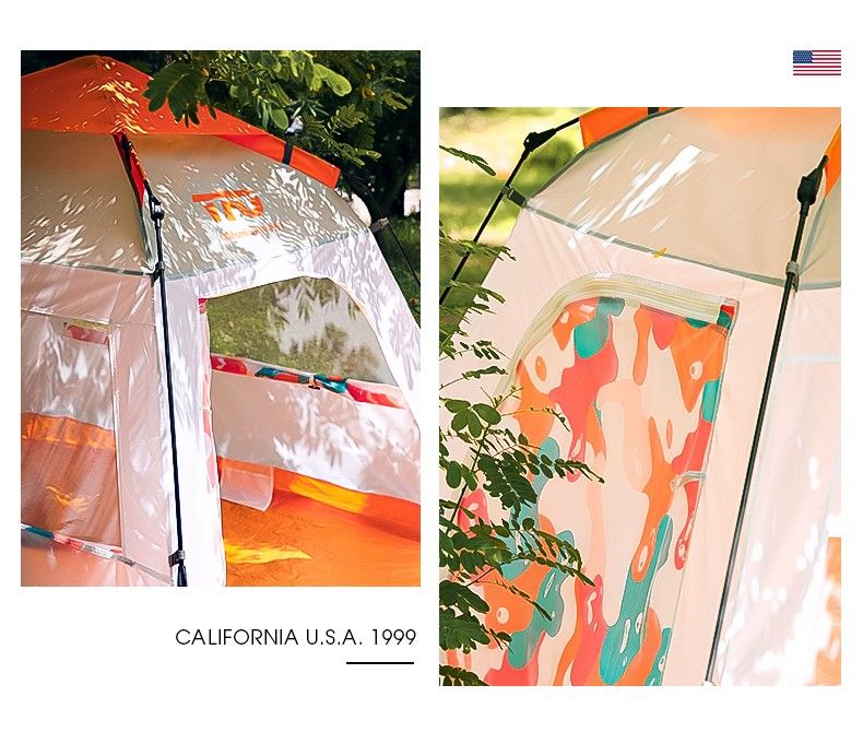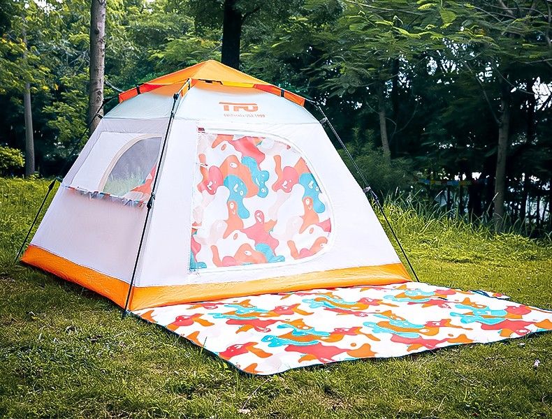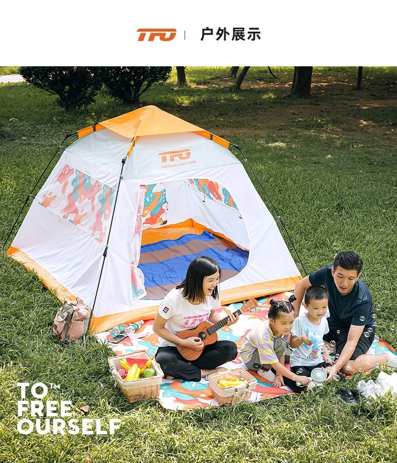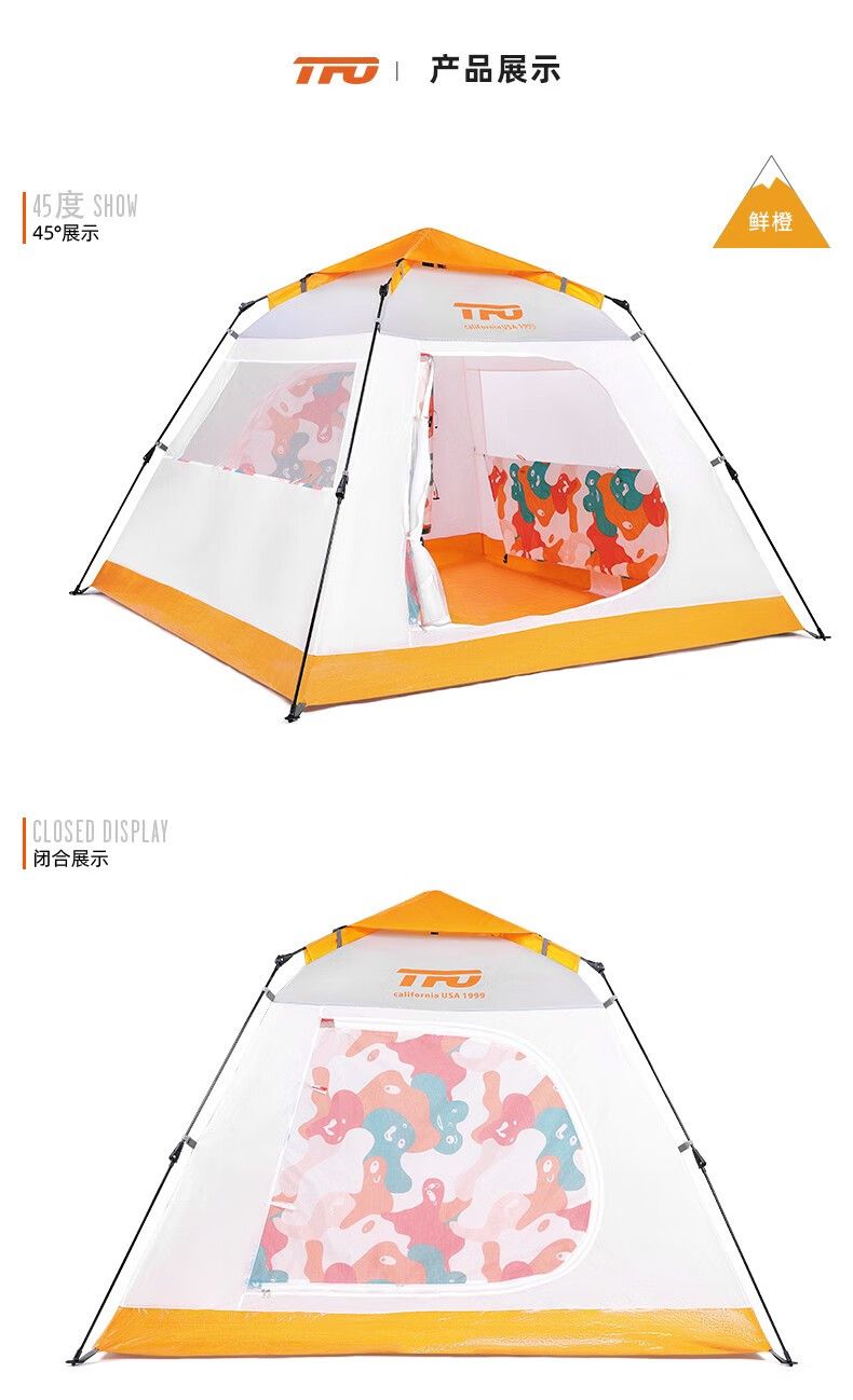 TFO帐篷户外 速开全自动户外帐篷3-4人 野营大空间四面透风帐篷 鲜橙【弹压自动帐】 200*200*150cm