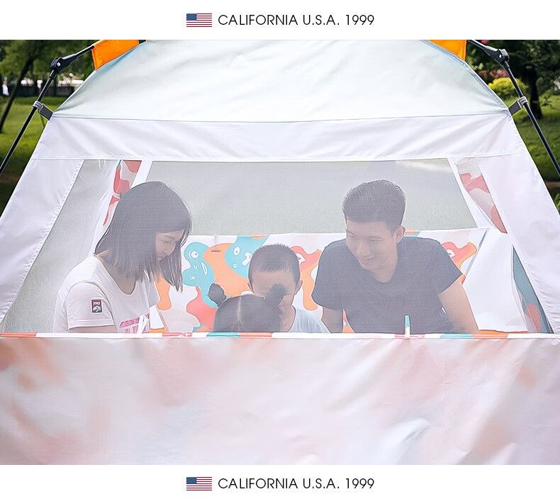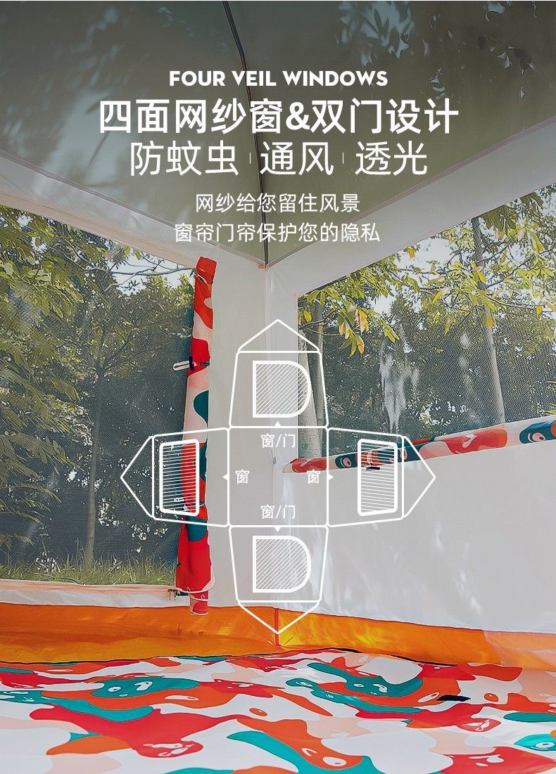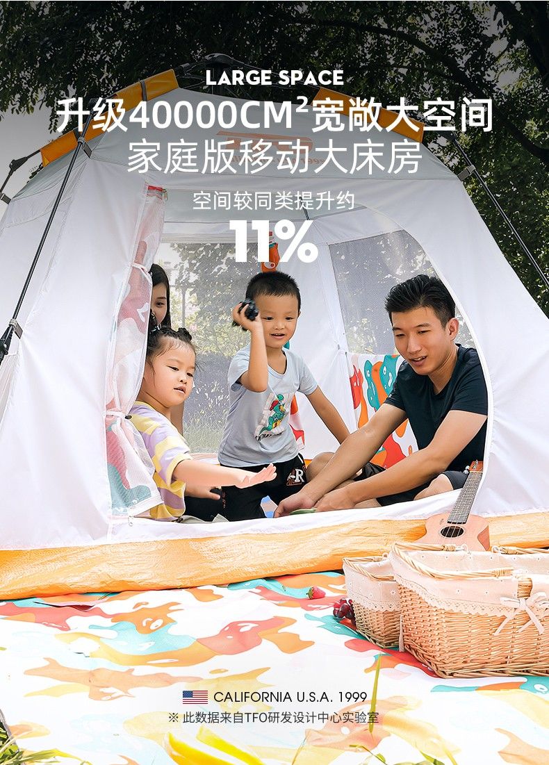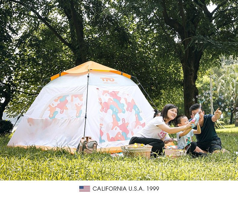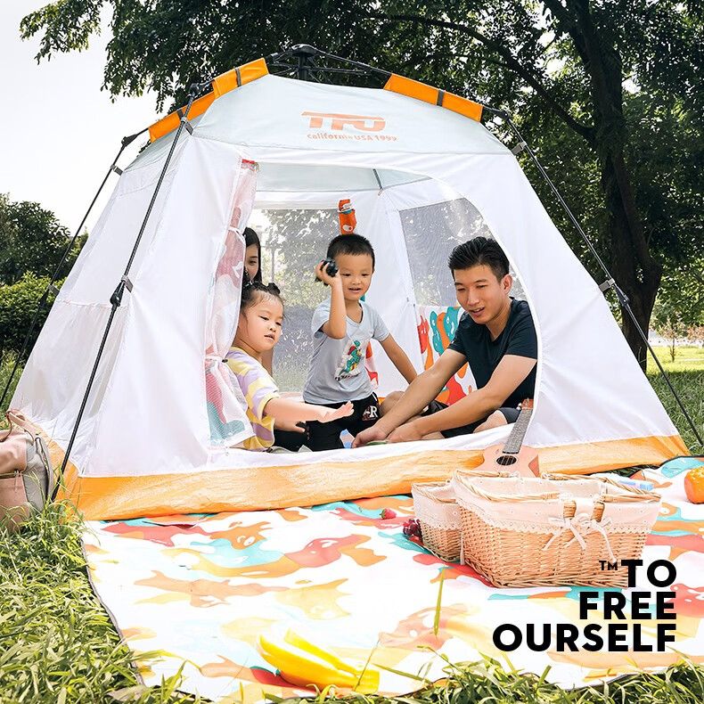 TFO帐篷户外 速开全自动户外帐篷3-4人 野营大空间四面透风帐篷 鲜橙【弹压自动帐】 200*200*150cm