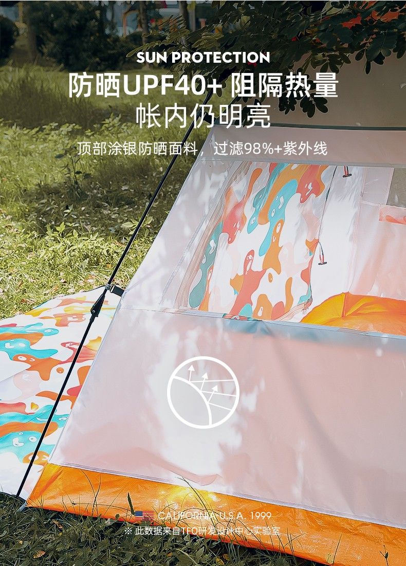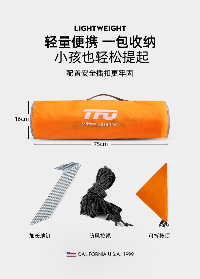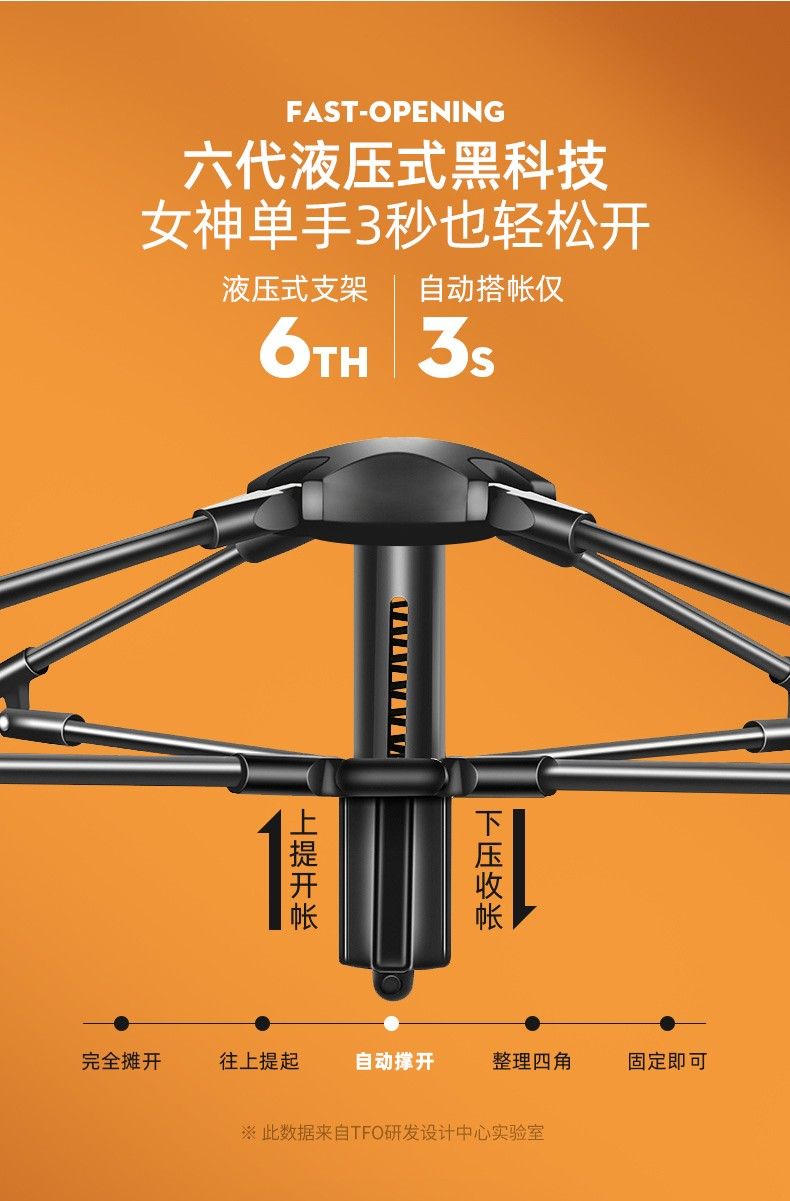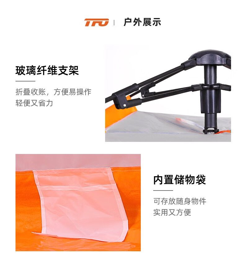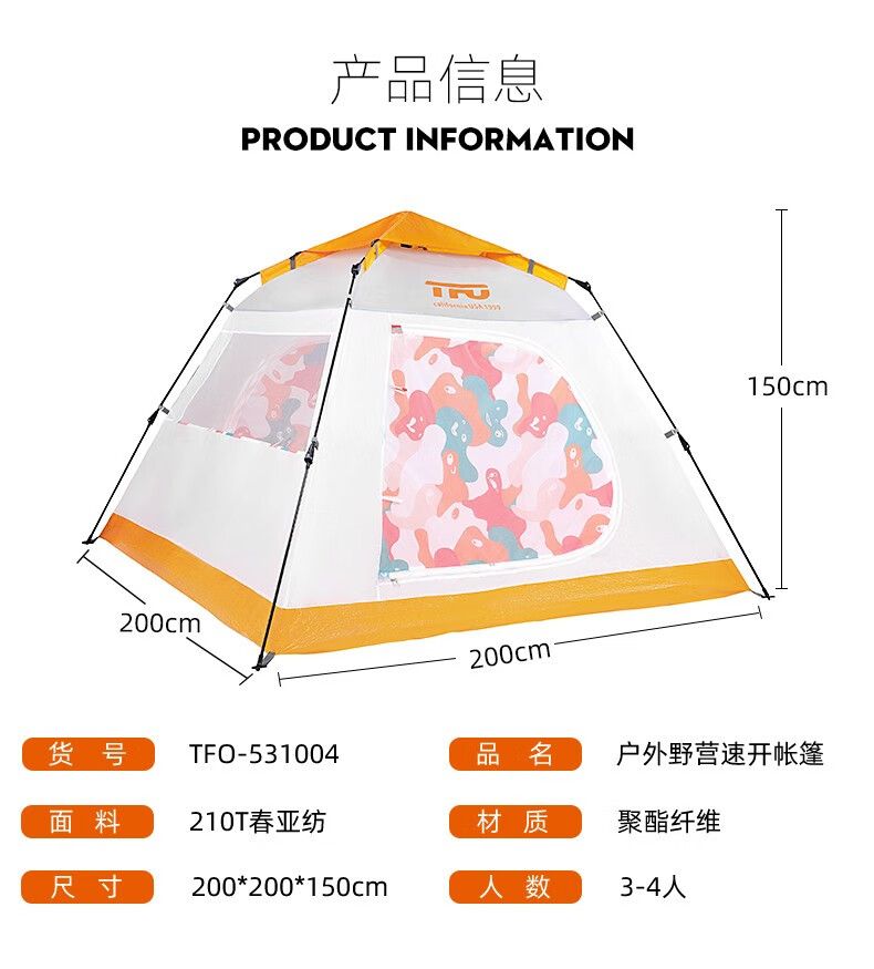 商品名称:TFO帐篷户外 速开全自动户外帐篷3-4人 野营大空间四面透风帐篷 鲜橙【弹压自动帐】 200*200*150cm