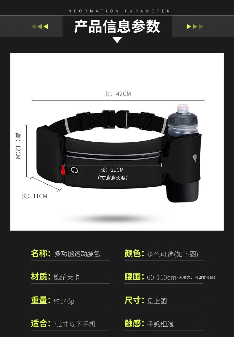 商品名称:【TFO运动腰包】TFO 运动腰包 多功能户外便携水壶包跑步包手机包9402402 灰色