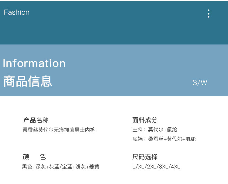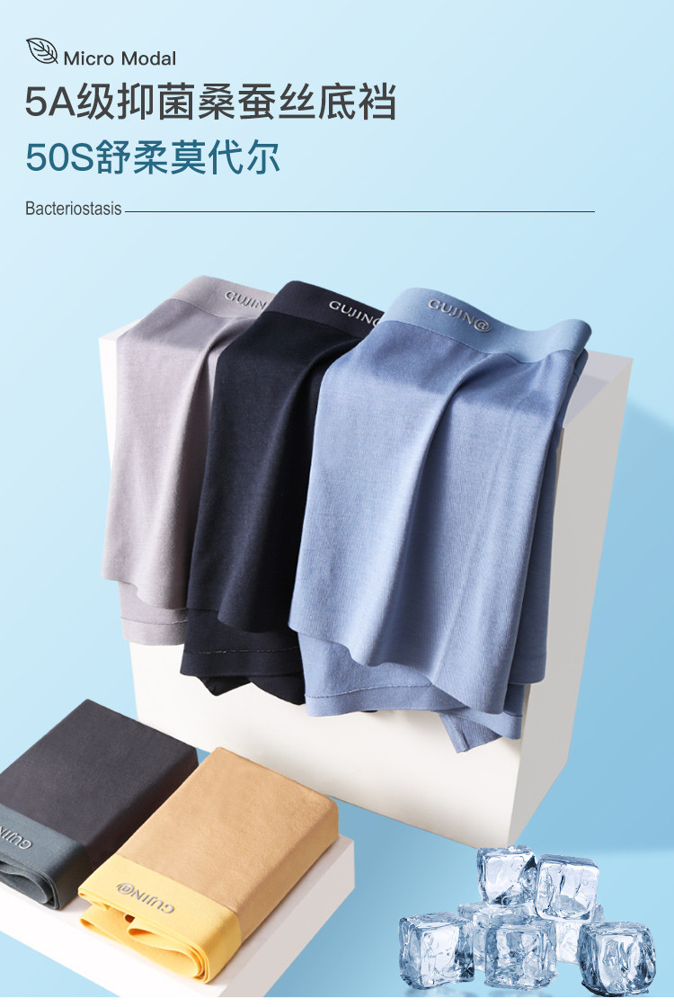 商品名称:【5A抑菌裆】3条装舒柔莫代尔亲肤透气无痕抑菌运动男士内裤男 411678
