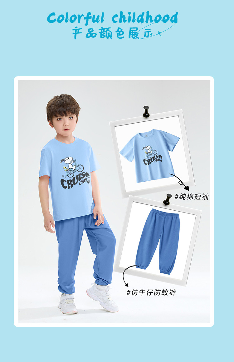 商品名称:男童套装25年夏季仿牛仔防蚊裤中大童运动夏装儿童纯棉短袖t恤 289695