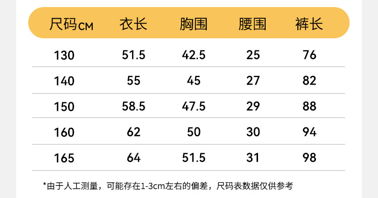 尺码 肩宽(cm) 袖长(cm) 上装号型 适合年龄 下装号型 衣长(cm) 腰围(cm) 裤长(cm) 臀围(cm) 胸围(cm) 号型