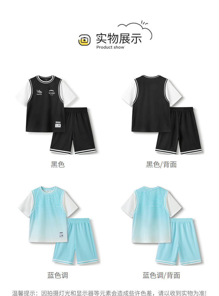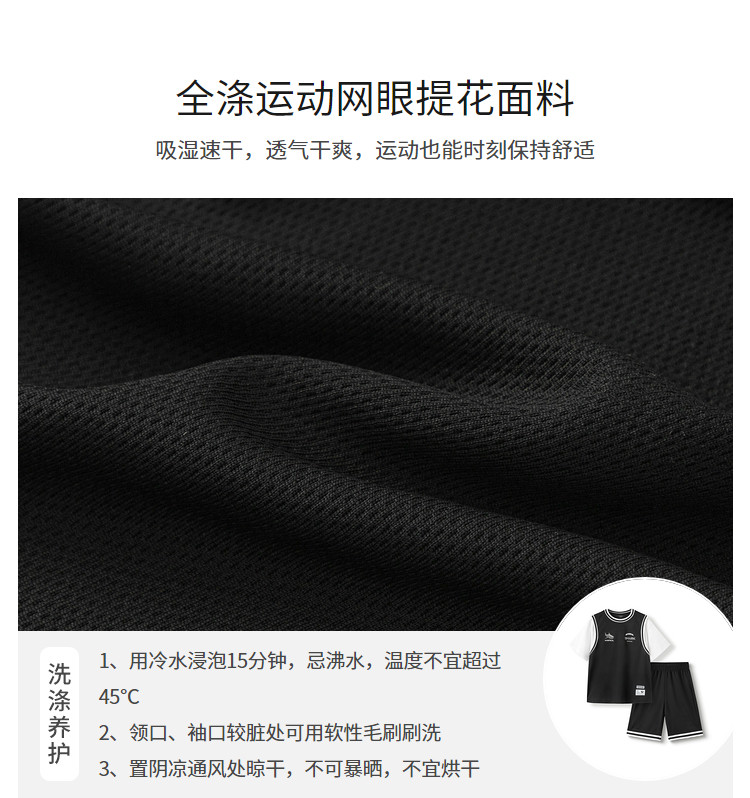 商品名称:吸湿速干套装透气儿童套装男童套装短袖夏季男大童两件套篮球服 891973