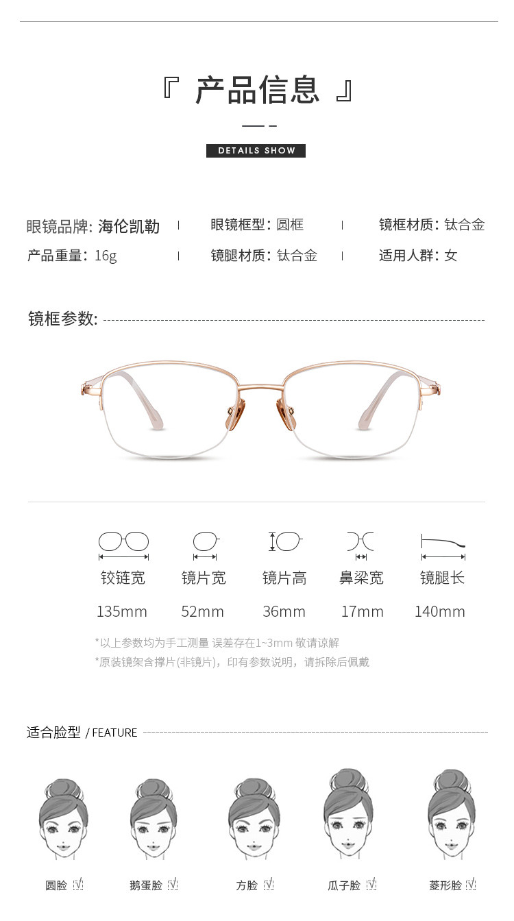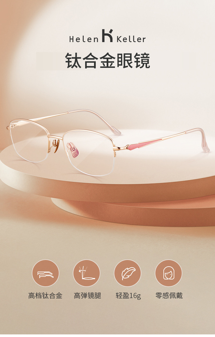 商品名称:海伦凯勒光学眼镜高弹轻盈钛合金半框眼镜架 090011