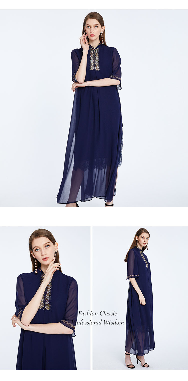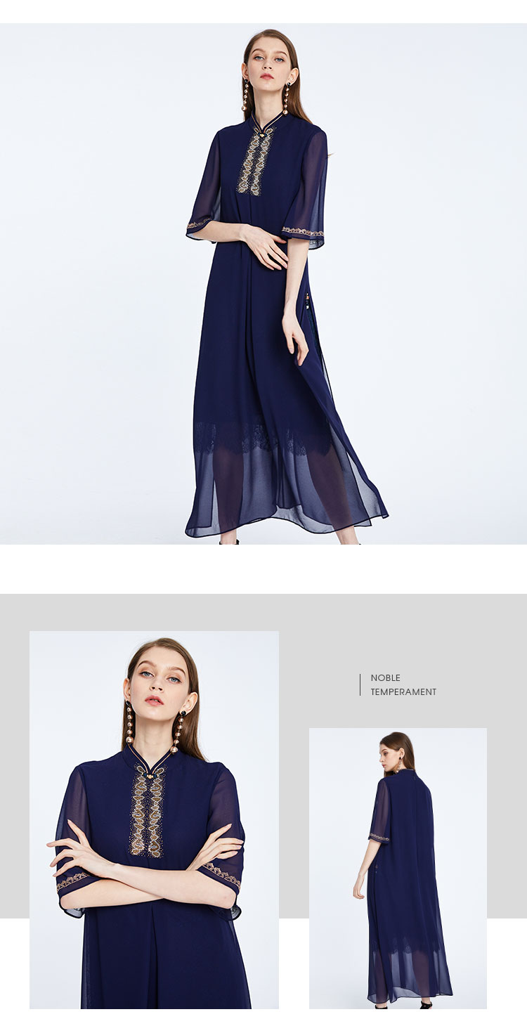 商品名称:商场同款夏季优雅气质中式改良贴片灵动飘逸连衣裙 090271