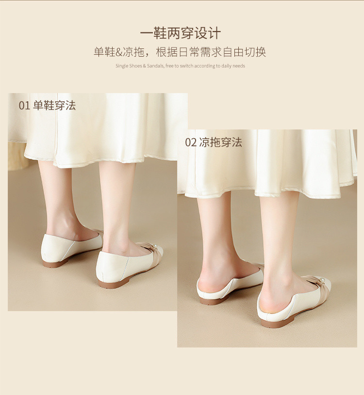 【牛剖层革】百搭一脚蹬女鞋平底鞋女气质高级感浅口单鞋女夏女鞋 179456