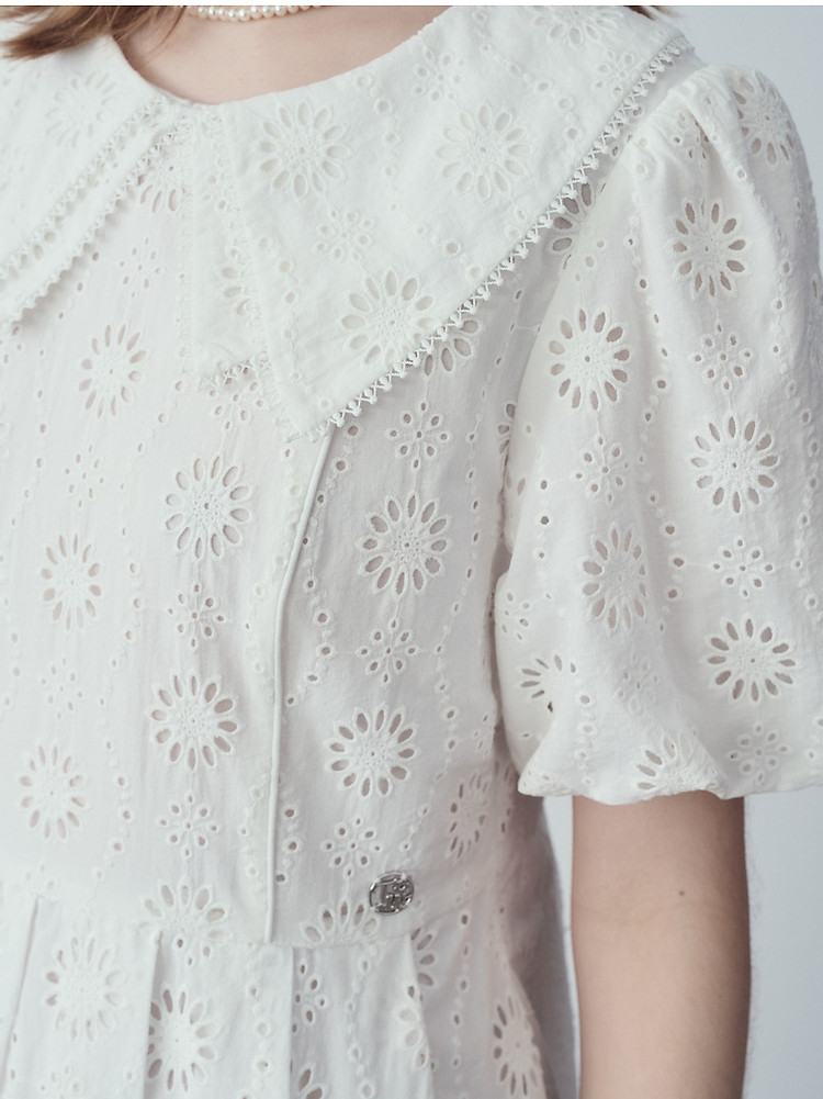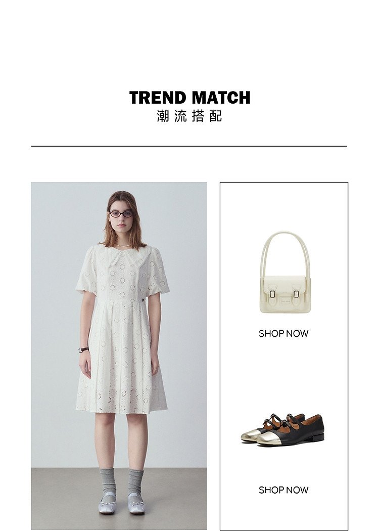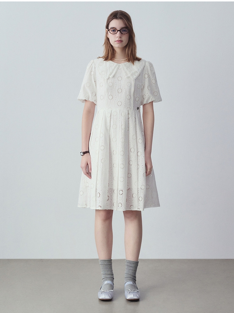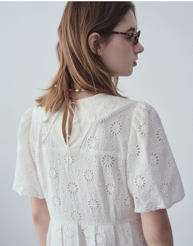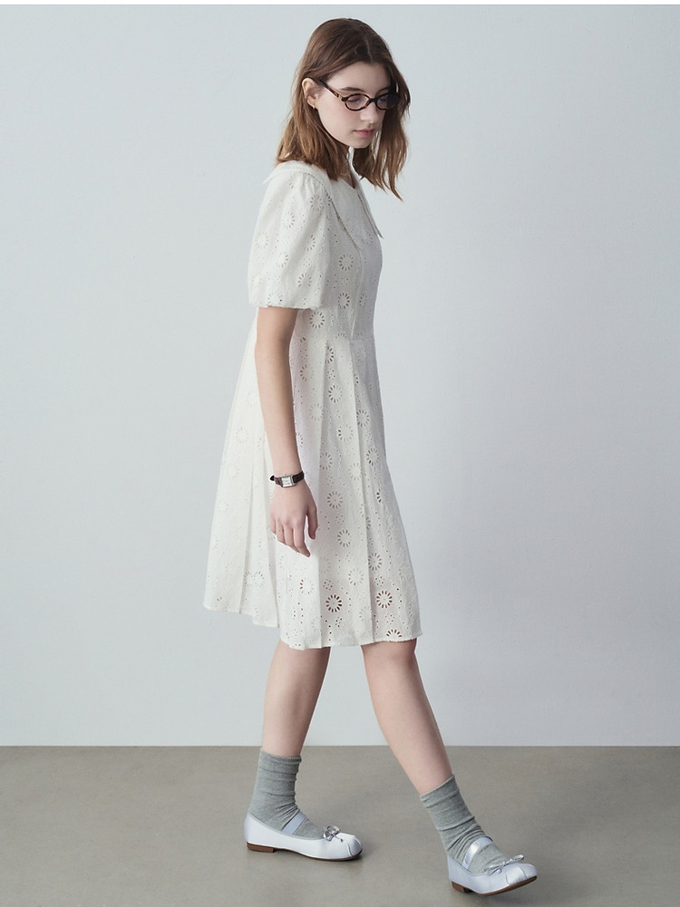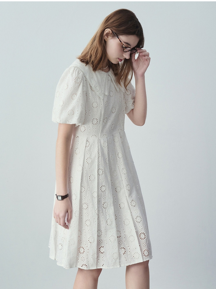 商品名称:小熊女装夏装镂空花朵连衣裙甜美娃娃领裙子 728769