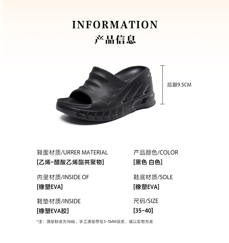 商品名称:【简约纯色】厚底坡跟休闲一脚蹬女士拖鞋夏季凉拖鞋女外穿拖鞋女 837952