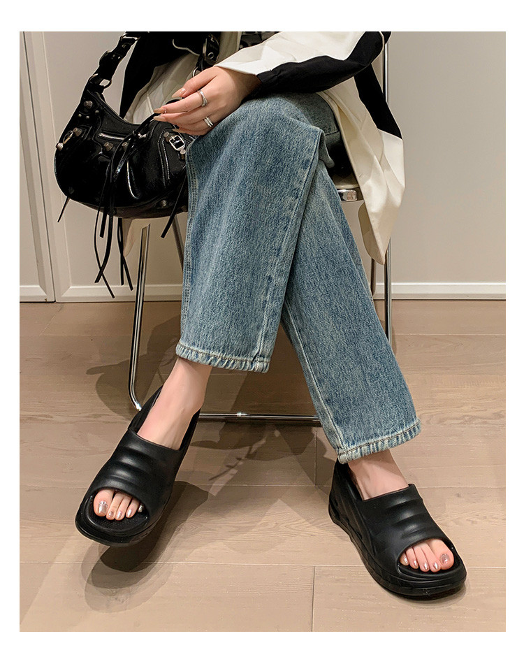 【简约纯色】厚底坡跟休闲一脚蹬女士拖鞋夏季凉拖鞋女外穿拖鞋女 837952